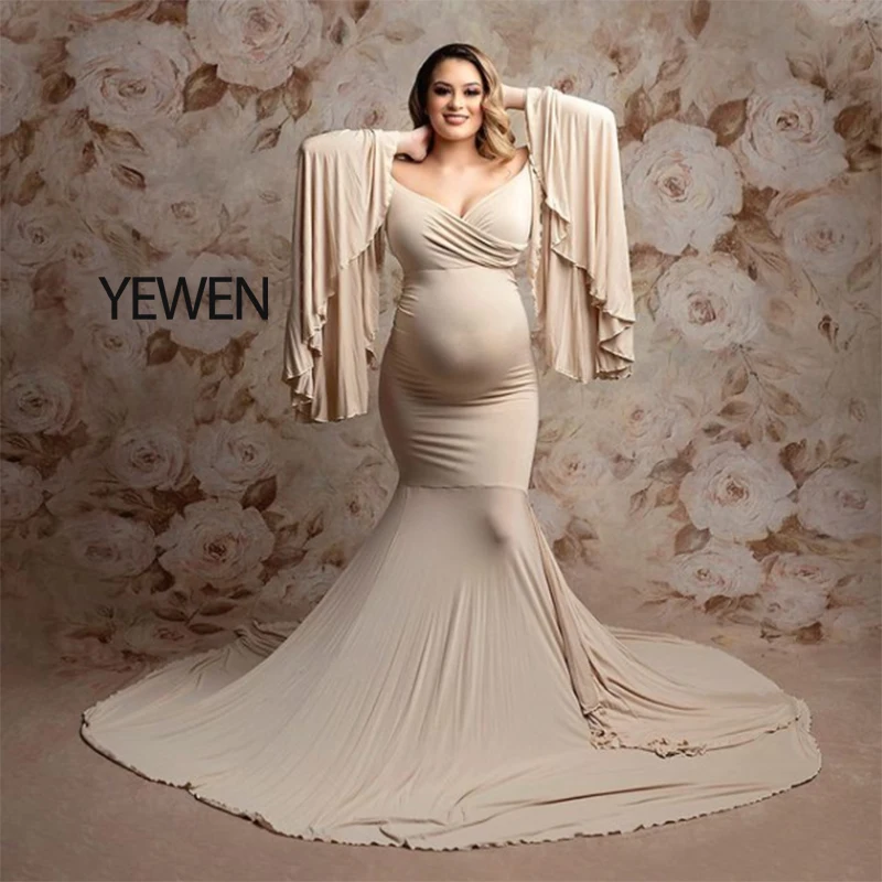 Платье для беременных из эластичной ткани с V-образным вырезом и длинными рукавами в стиле русалки