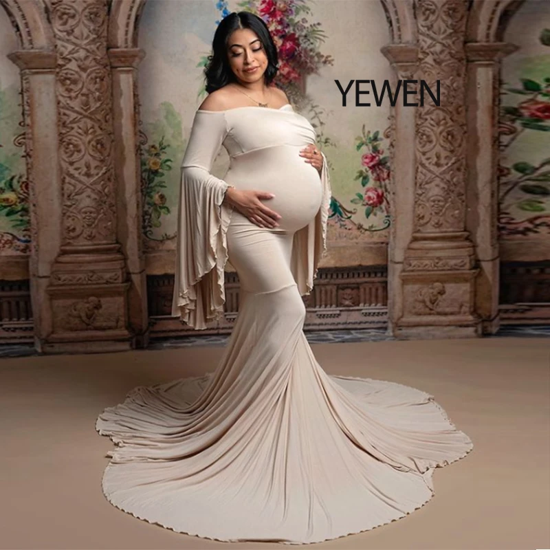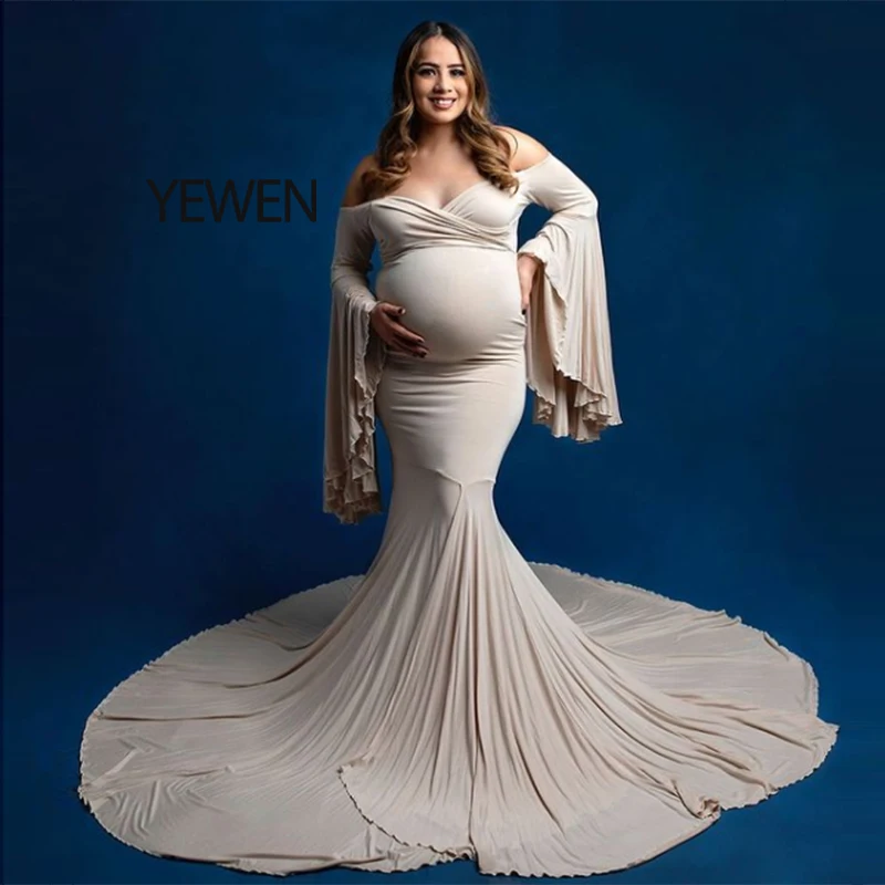 Элегантные платья для беременных с открытыми плечами для фотосъемки...