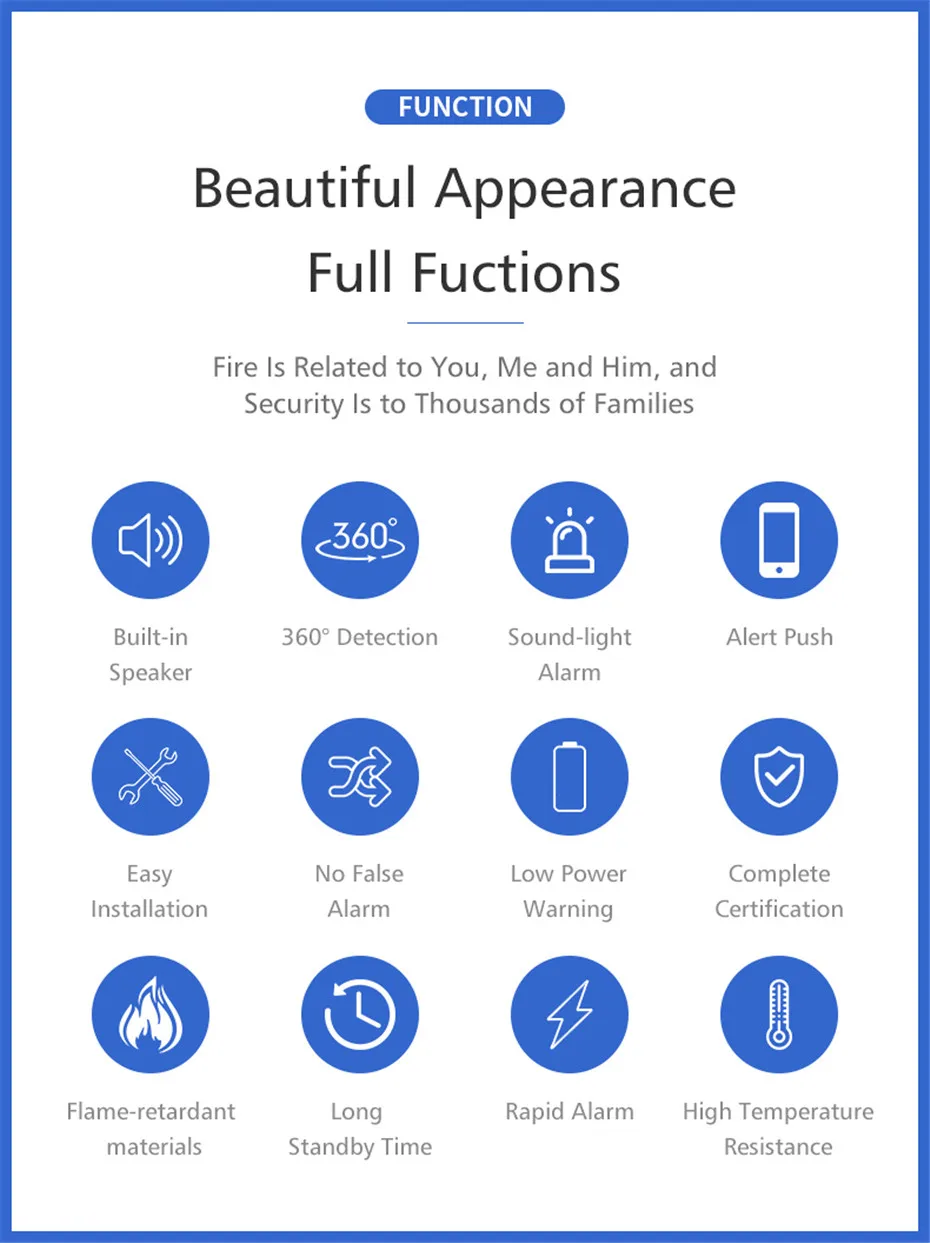 Tuya APP / WiFi детектор дыма пожарная охранная сигнализация Умный дом датчик беспроводное подключение работа с Alexa Google Home