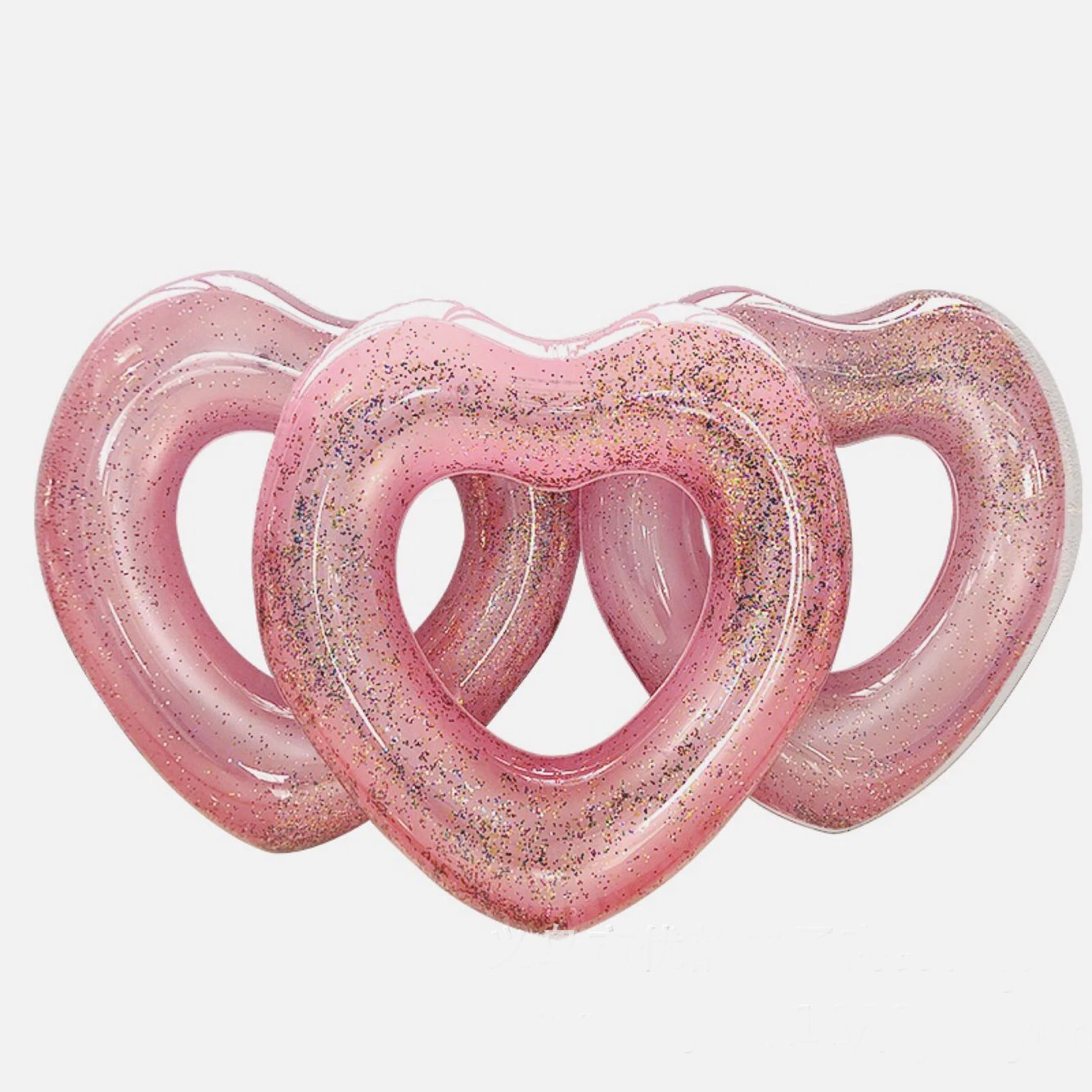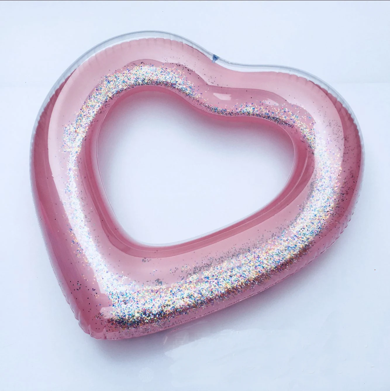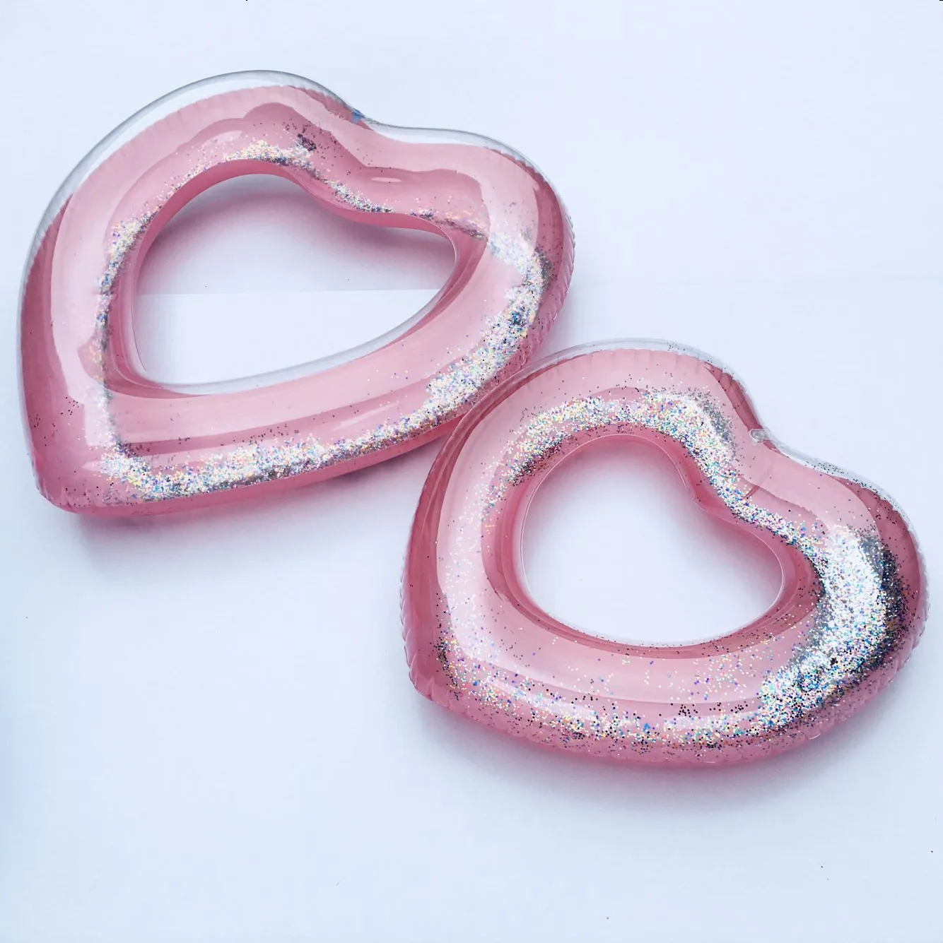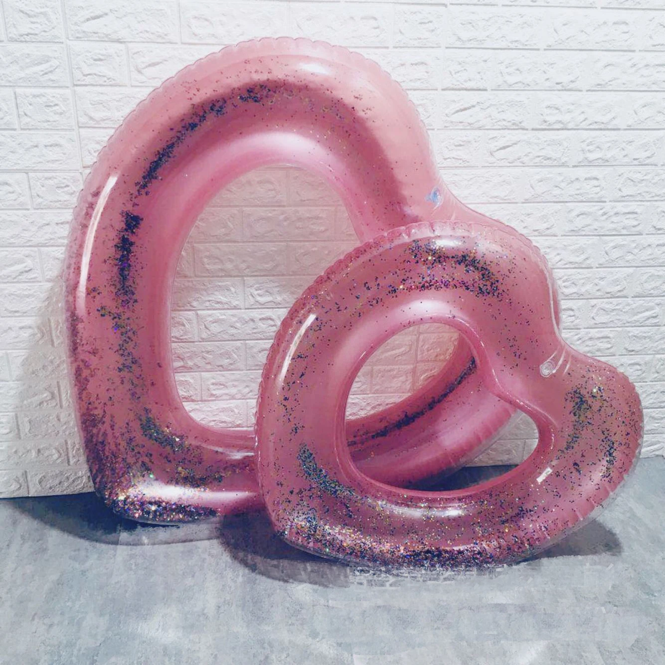 Кольцо для плавания розовое золото с блестками, надувной плавательный круг в форме сердца для взрослых и детей, летнее пляжное Круглое для плавания
