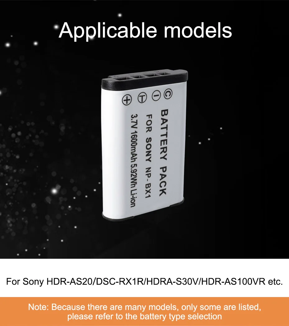 Батареи Введение:Тип батареи: перезаряжаемая литиевая батареяПолная декодированная версия: точно так же, как и ваш оригинальный аккумуляторЕмкость: 1600 мА-чРабочая температура: от 0 до 40 градусовСовместимые модели камер/видеокамер: Для sony: для Cyber-shot DSC-HXДетали Sony Cyber-shot DSC-HX300DSC-HX50DSC-HX50V/BDSC-HX50VBDSC-HX60VDSC-HX350Прочие серии FDR-X3000FDR-X3000RHDR-AS100VHDR-AS200VHDR-AS300HDR-AS300VHDR-AS300RHDR-AS50R Детали Sony Cyber-shot DSC-RX1R Детали Sony Cyber-shot DSC-RX1RIICyber-shot DSC-RX1R/BДетали Sony Cyber-shot DSC-RX1Детали Sony Cyber-shot DSC-RX100Cyber-shot DSC-RX100 IICyber-shot DSC-RX100 IIICyber-shot DSC-RX100 IVДетали Sony Cyber-shot DSC-RX100VДетали Sony Cyber-shot DSC-RX100VIДетали Sony Cyber-shot DSC-RX100VIICyber-shot DSC-RX100/BДетали Sony Cyber-shot DSC-RX100M2Cyber-shot DSC-RX100M2/BДетали Sony Cyber-shot DSC-RX1BДетали Sony Cyber-shot DSC-WX300Cyber-shot DSC-WX300/BCyber-shot DSC-WX300/LCyber-shot DSC-WX300/RCyber-shot DSC-WX300/TCyber-shot DSC-WX300/ВтHDR-AS15HDR-AS15BHDR-AS15SHDR-AS30VHDR-AS100VHDR-GW66VHDR-GW66VEHDR-GWP88HDR-GWP88V HDR-GW66EHDR-GWP88VBHDR-GWP88VERX100 HX50 HX300 WX300 HX400 H400 и HX300 Новая камера для sony zv-1