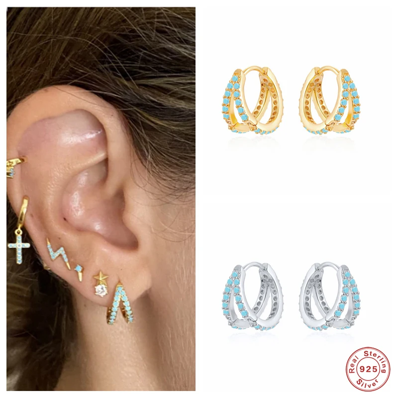 Женские серьги-кольца из стерлингового серебра 925 пробы с бирюзой и кристаллами CZ, вечерние серьги Huggie, ювелирные украшения