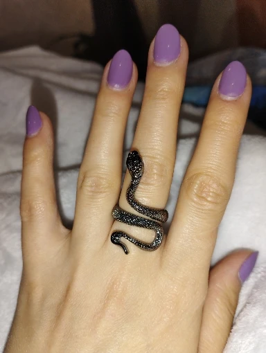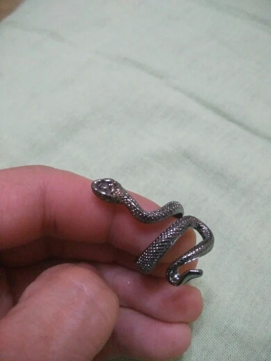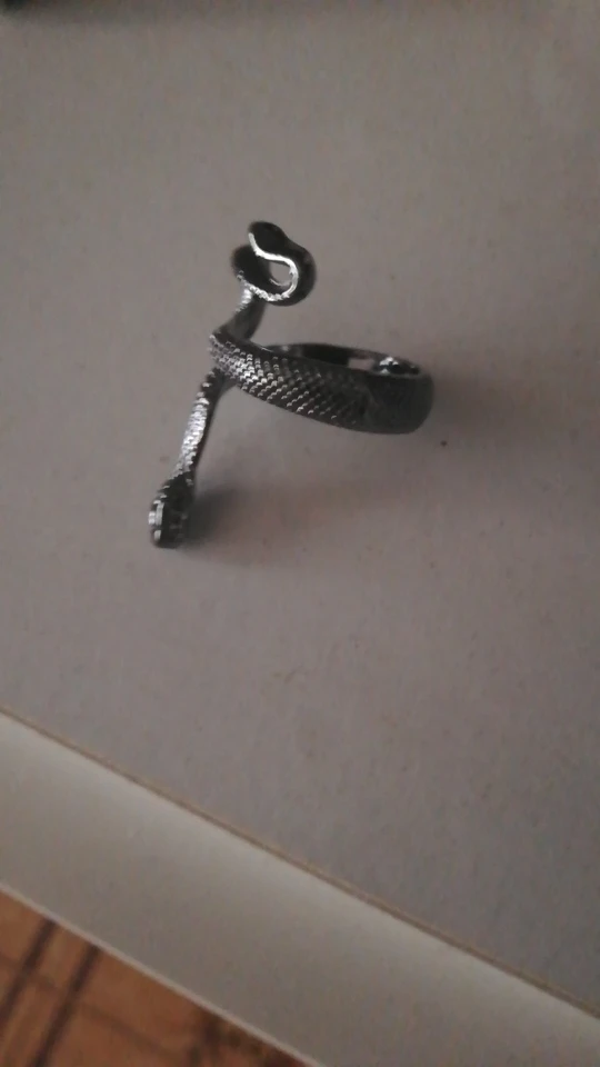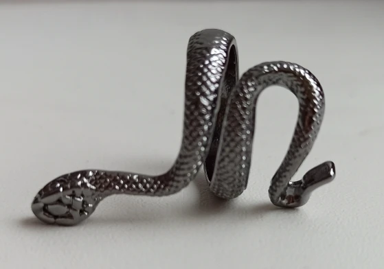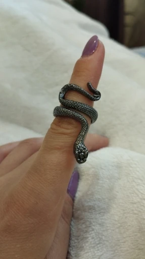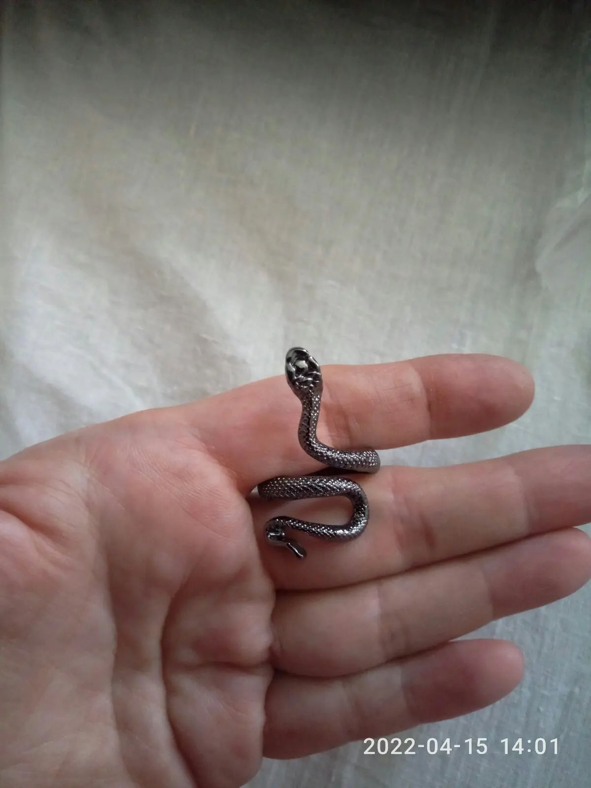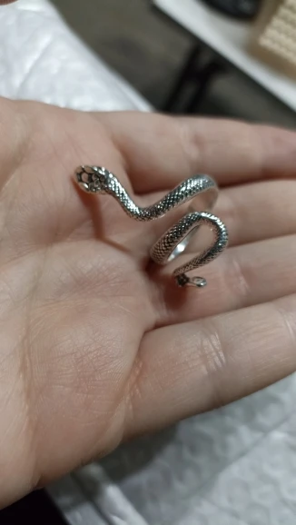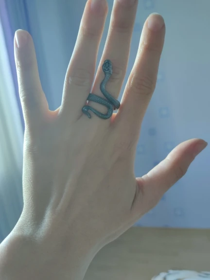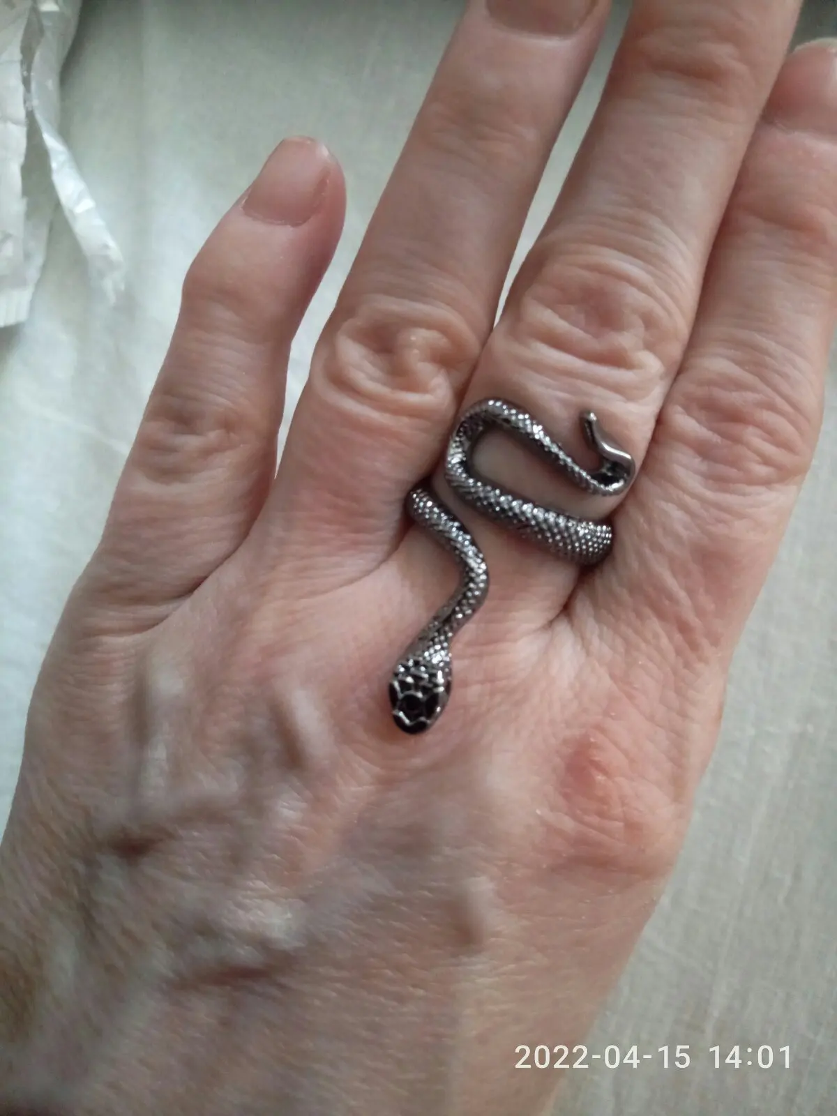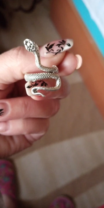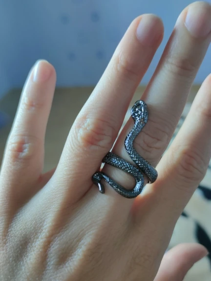 Интересное кольцо в виде змеи, хорошее качество, крупное, блестит, размер немного регулируется, доставка больше двух месяцев. Спасибо продавцу.