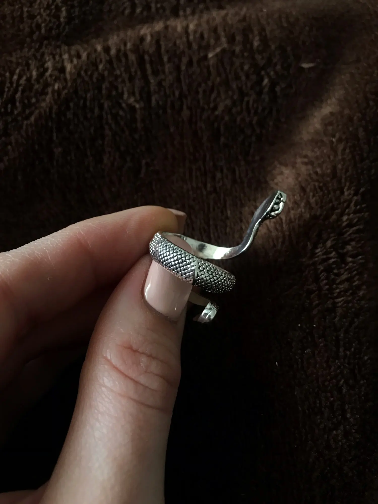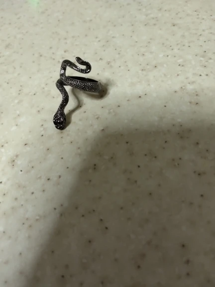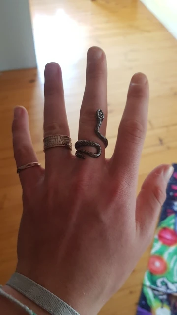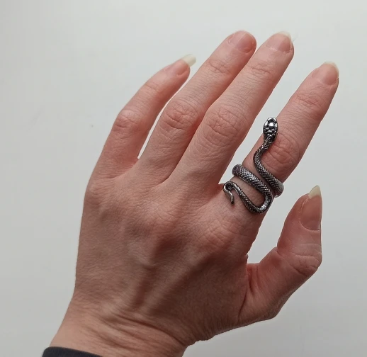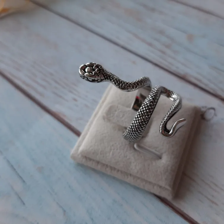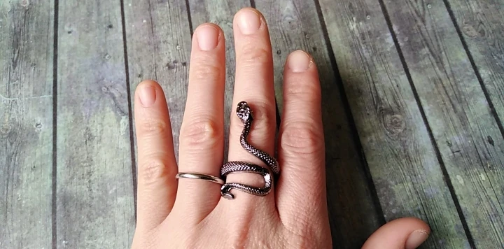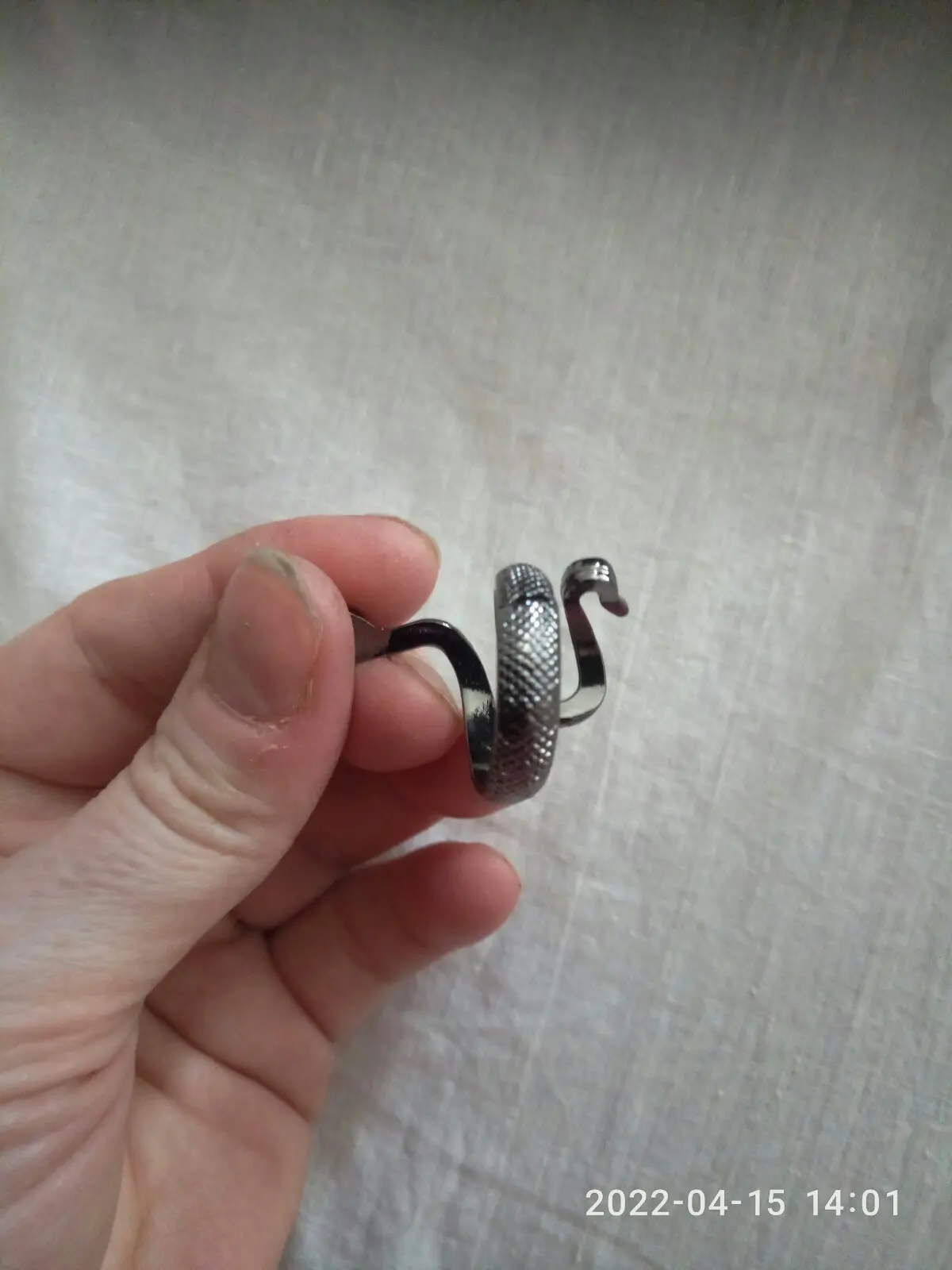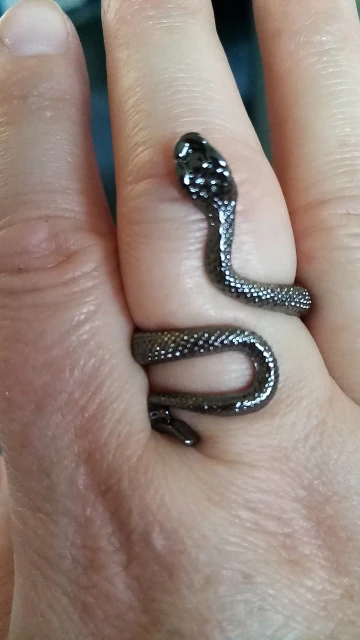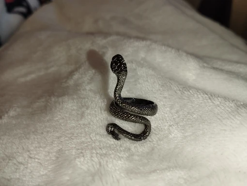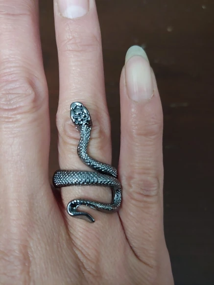 Интересное кольцо в виде змеи, хорошее качество, крупное, блестит, размер немного регулируется, доставка больше двух месяцев. Спасибо продавцу.
