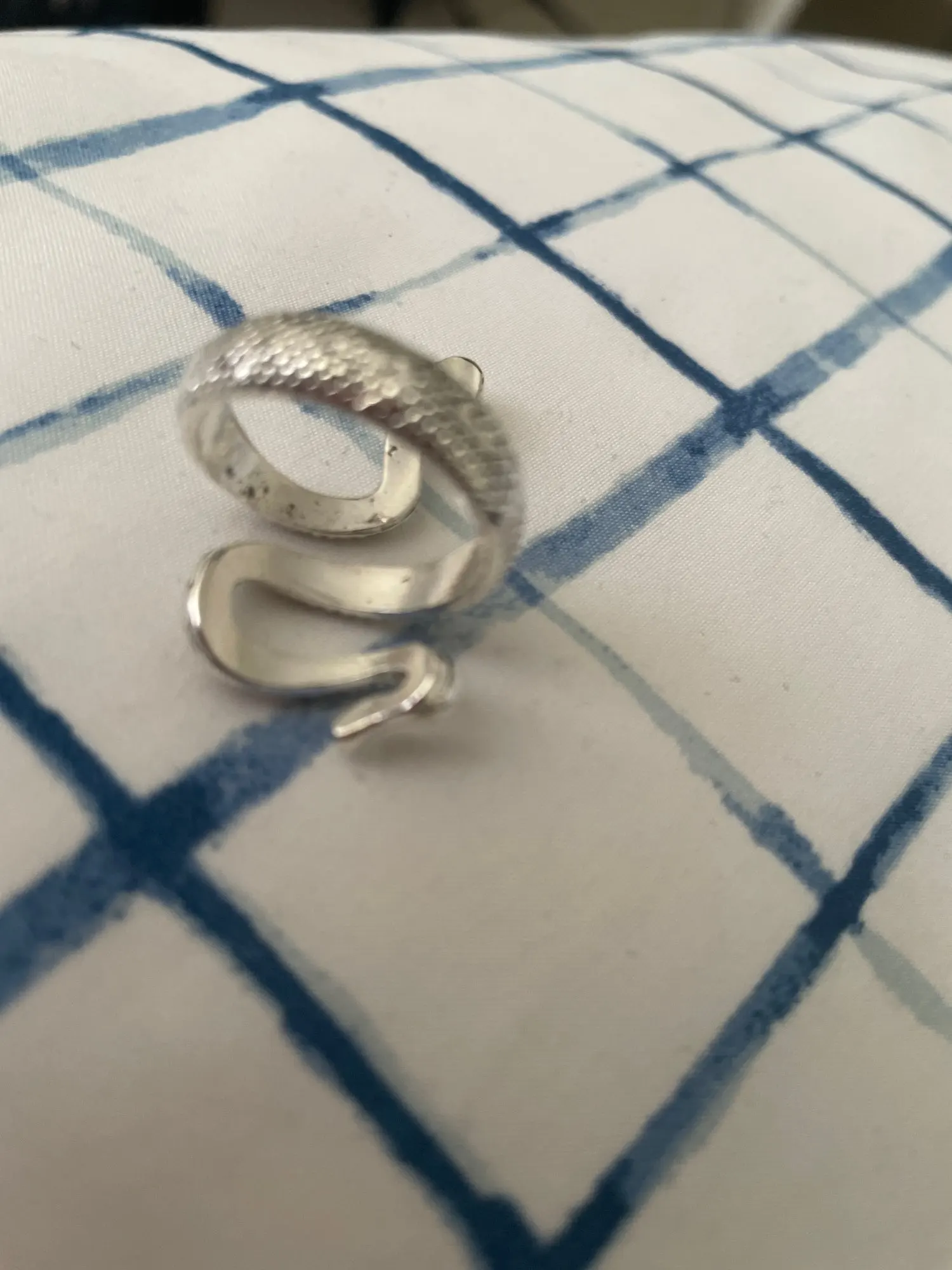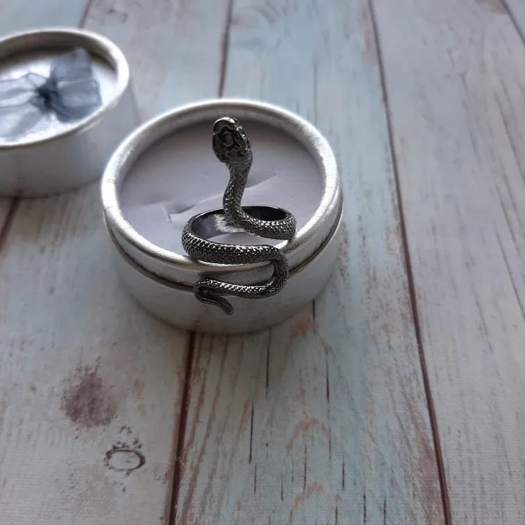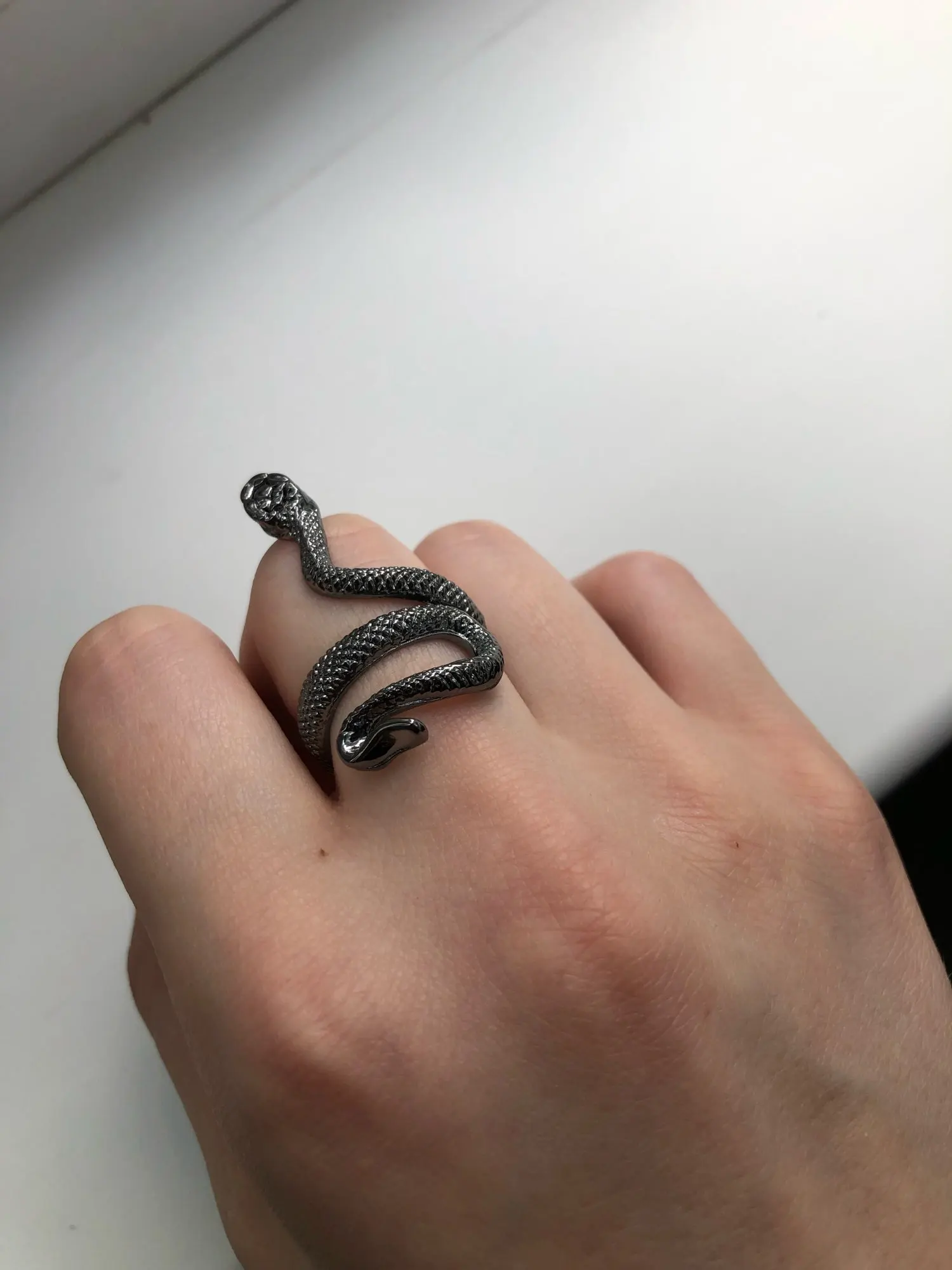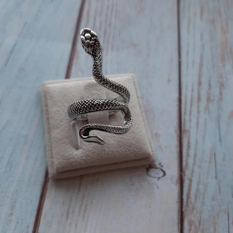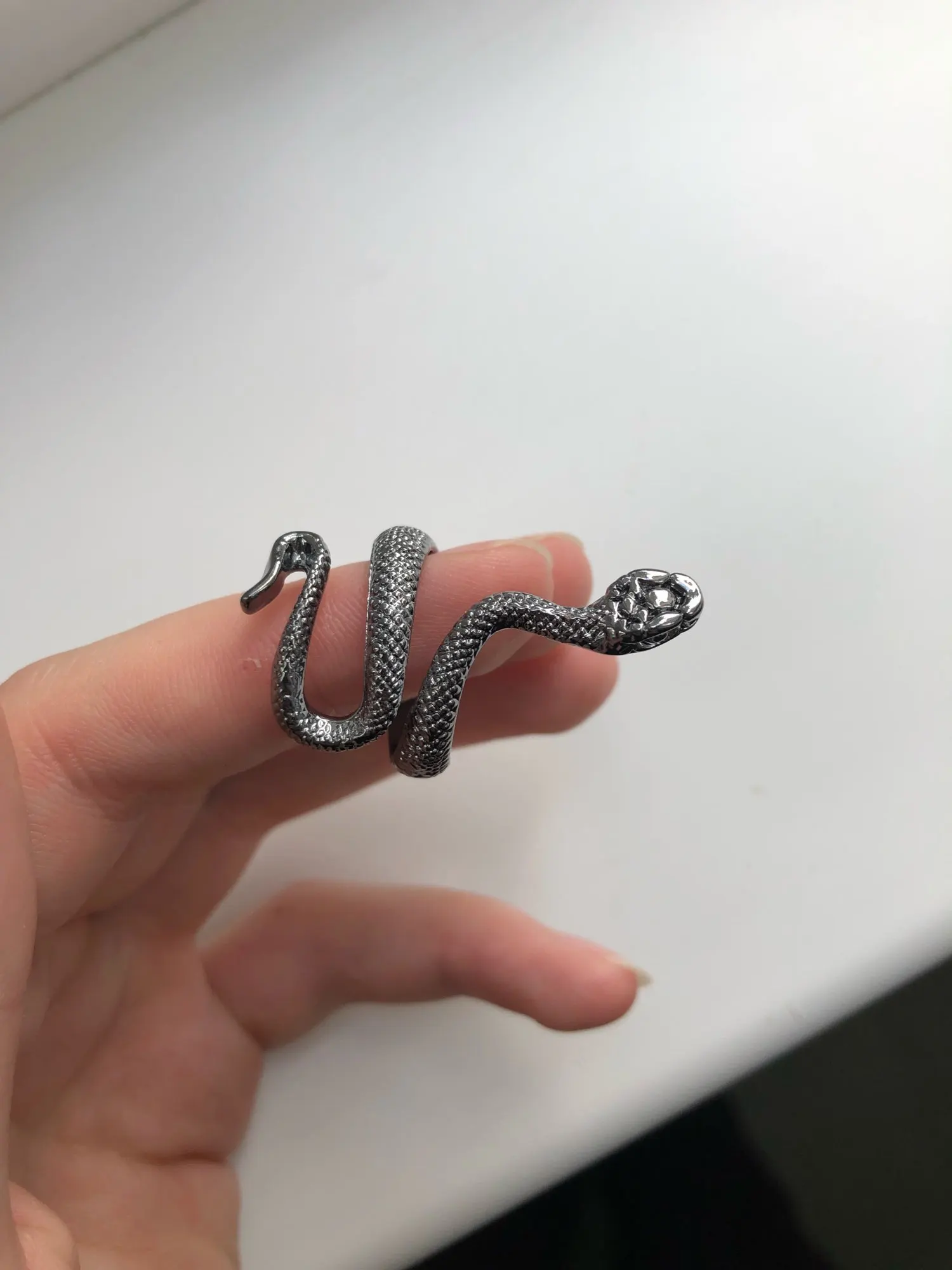 Интересное кольцо в виде змеи, хорошее качество, крупное, блестит, размер немного регулируется, доставка больше двух месяцев. Спасибо продавцу.