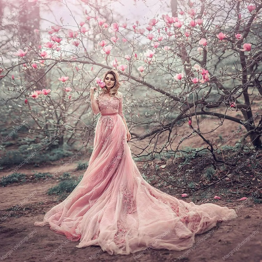 Красивые розовые тюлевые Длинные платья для беременных с пышными ру...