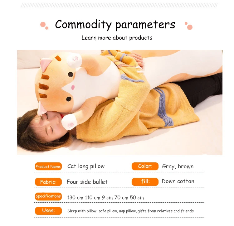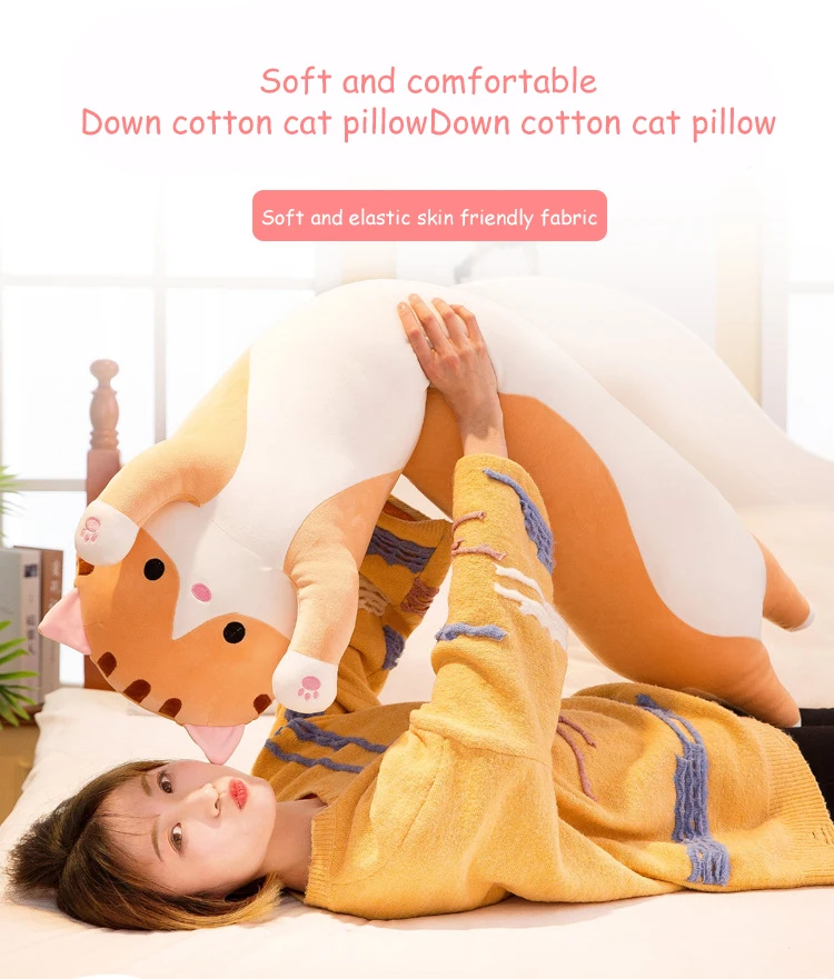 Симпатичная мягкая длинная подушка в виде кошки для парня, плюшевые...