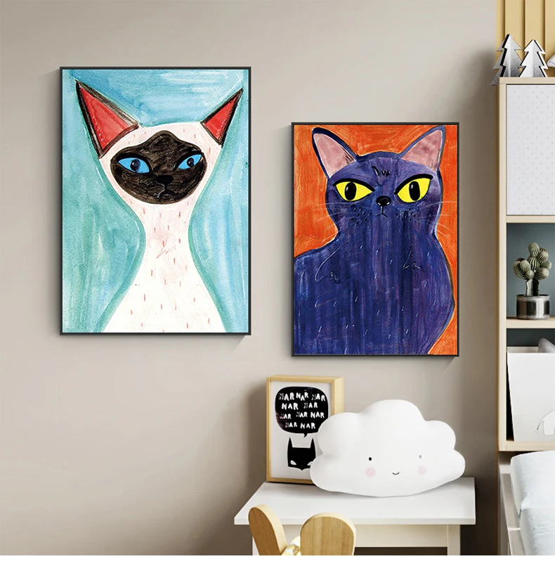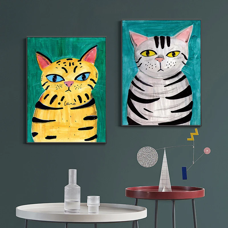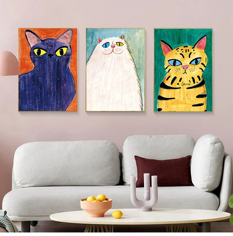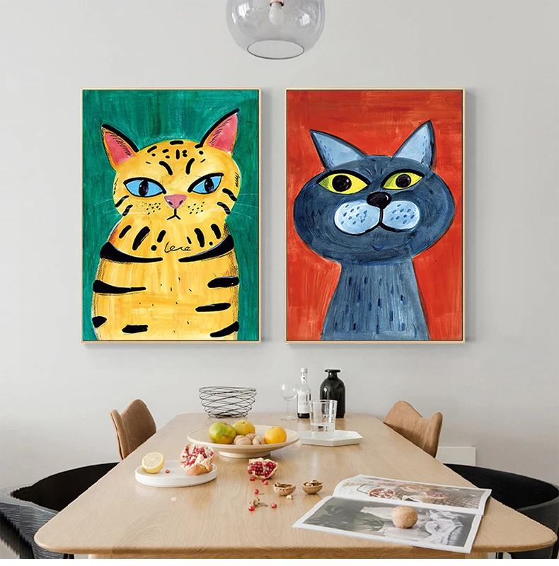 С рисунком кота из мультфильма на холсте настенные картины красочны...