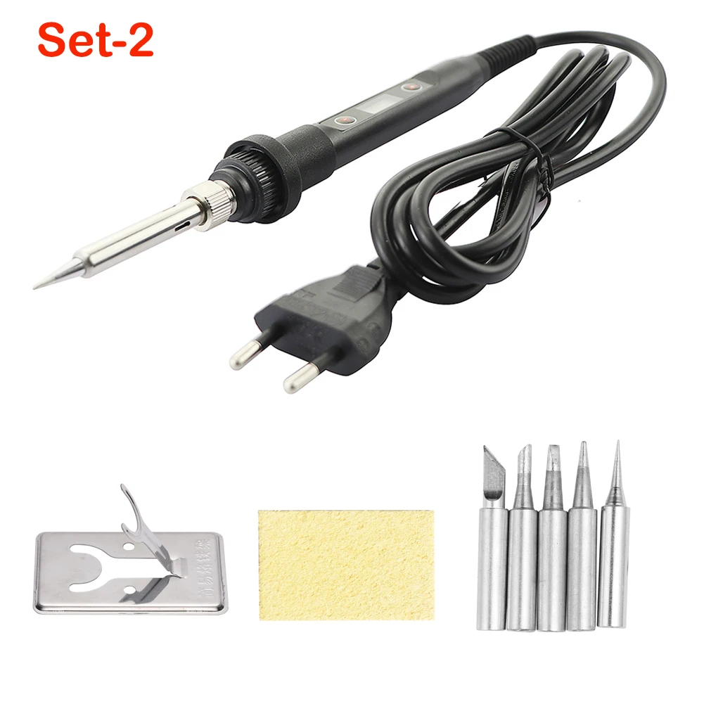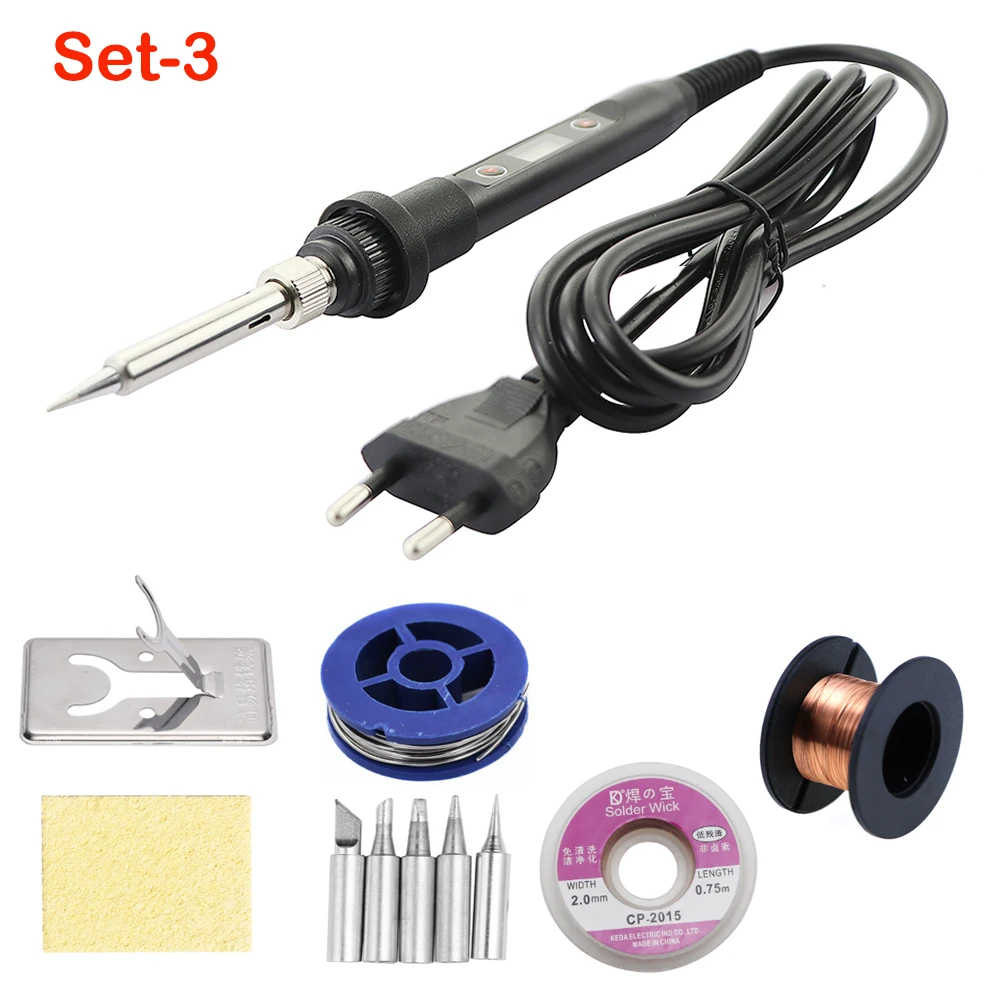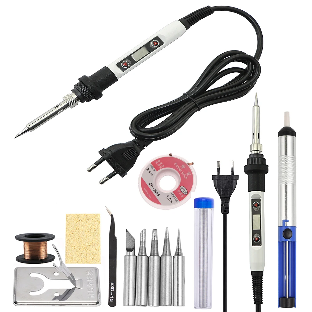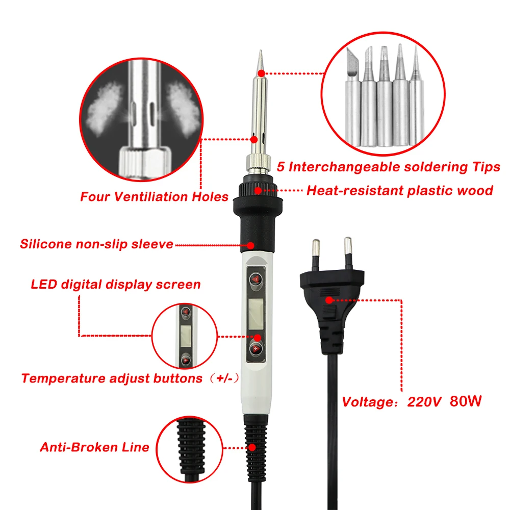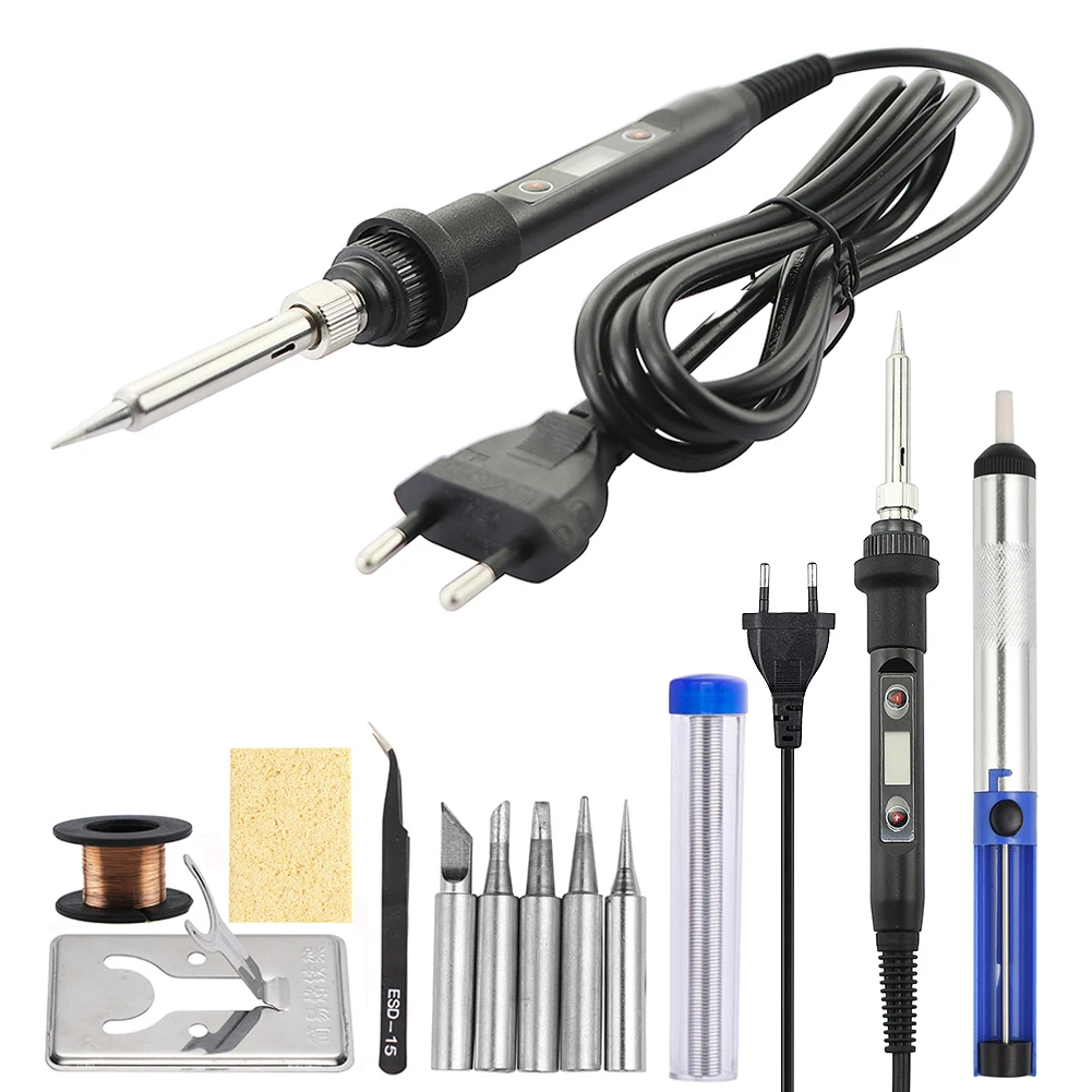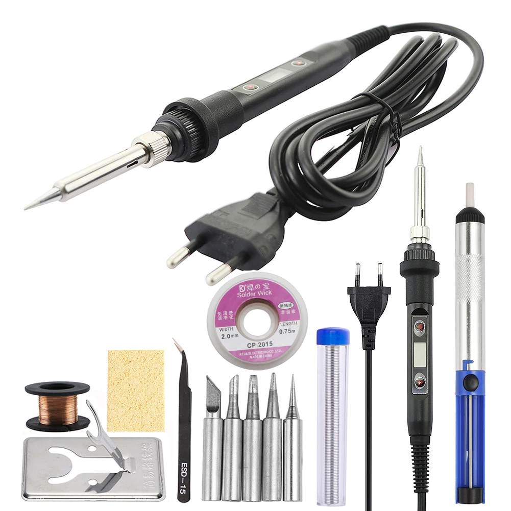 Электрический паяльник 80 Вт с регулируемой температурой, ЖК-дисплей, сварочный инструмент, керамический нагреватель, паяльная головка, набор насосов для распайки