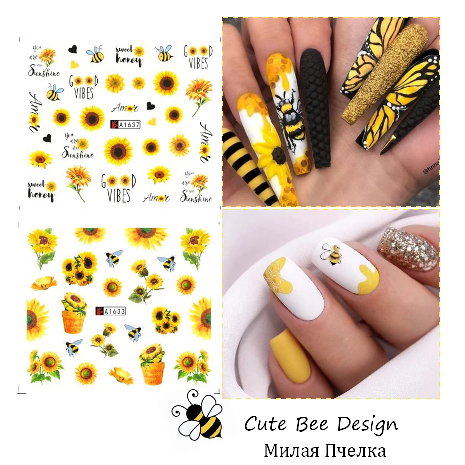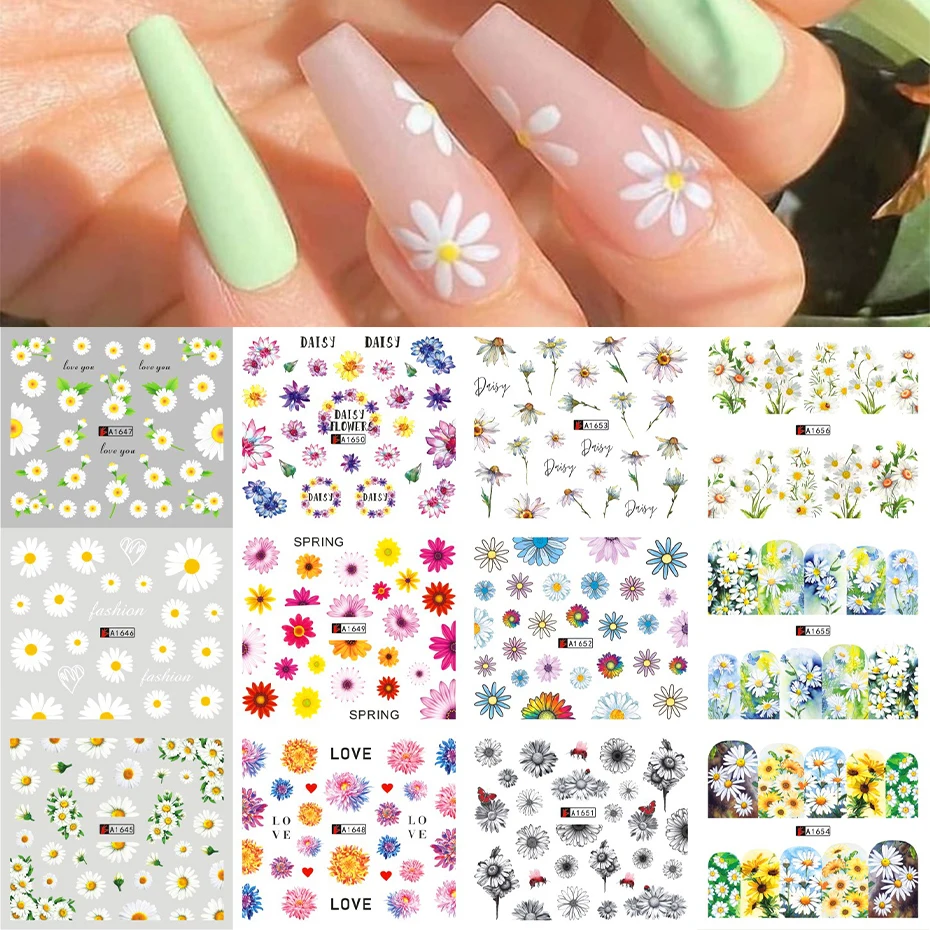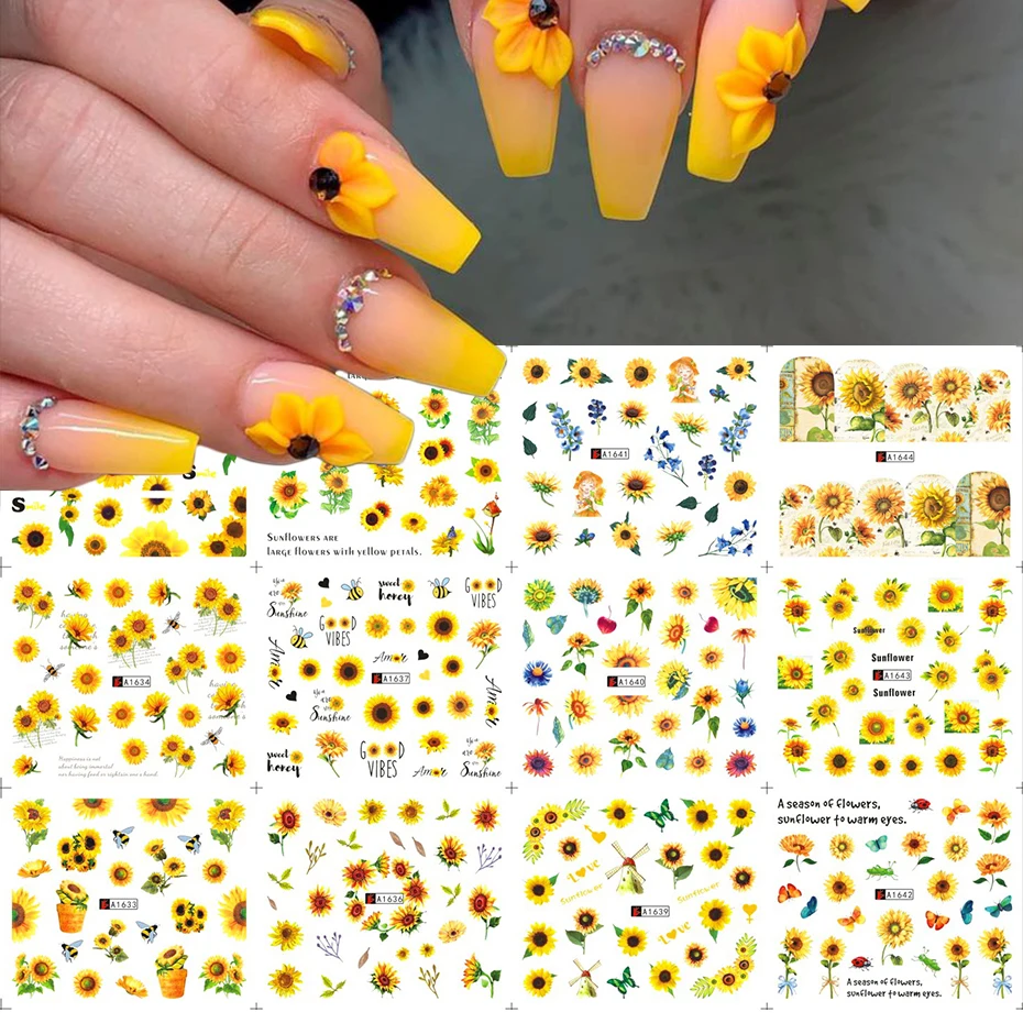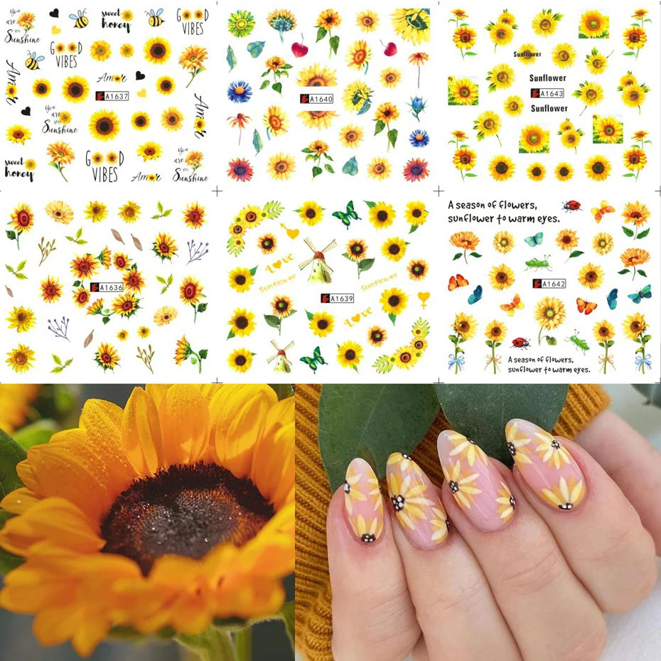 Наклейки для ногтей с подсолнухами, простые весенние цветы, Переводные слайдеры, натуральные Цветочные Переводные картинки для ногтей, тату сделай сам, CHA1633-1644