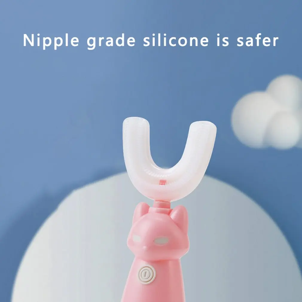 2. Высококачественный материал: в головке щетки этой зубной щетки используется очень тонкая силиконовая щетка пищевого качества, которая может защитить десны и зубы вашего ребенка.