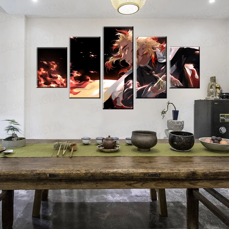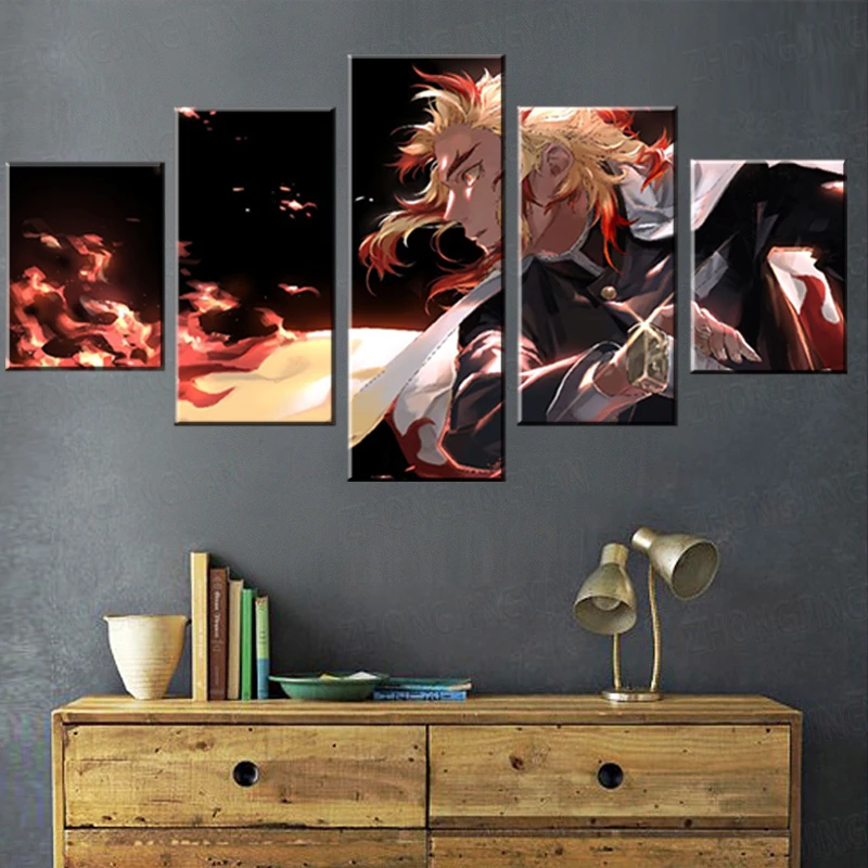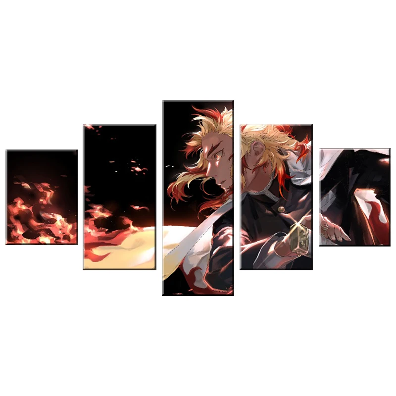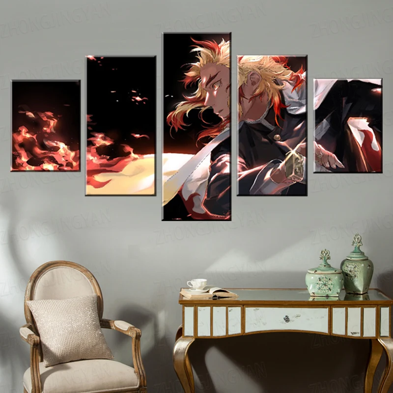 5 панелей HD Аниме Картина мальчика ренгоку куююрского, рассекающий демонов киметасу, Постер No Yaiba, анимационное искусство, настенные декоративные картины