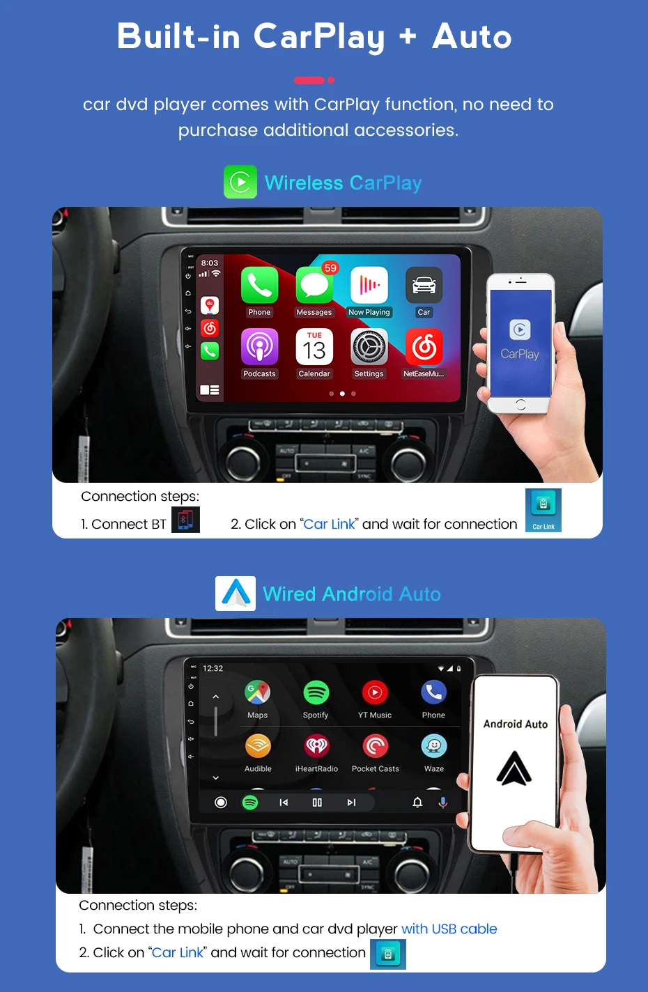 Автомобильный dvd-плеер поставляется с функцией carplay и Android Auto, не нужно приобретать дополнительные аксессуары.