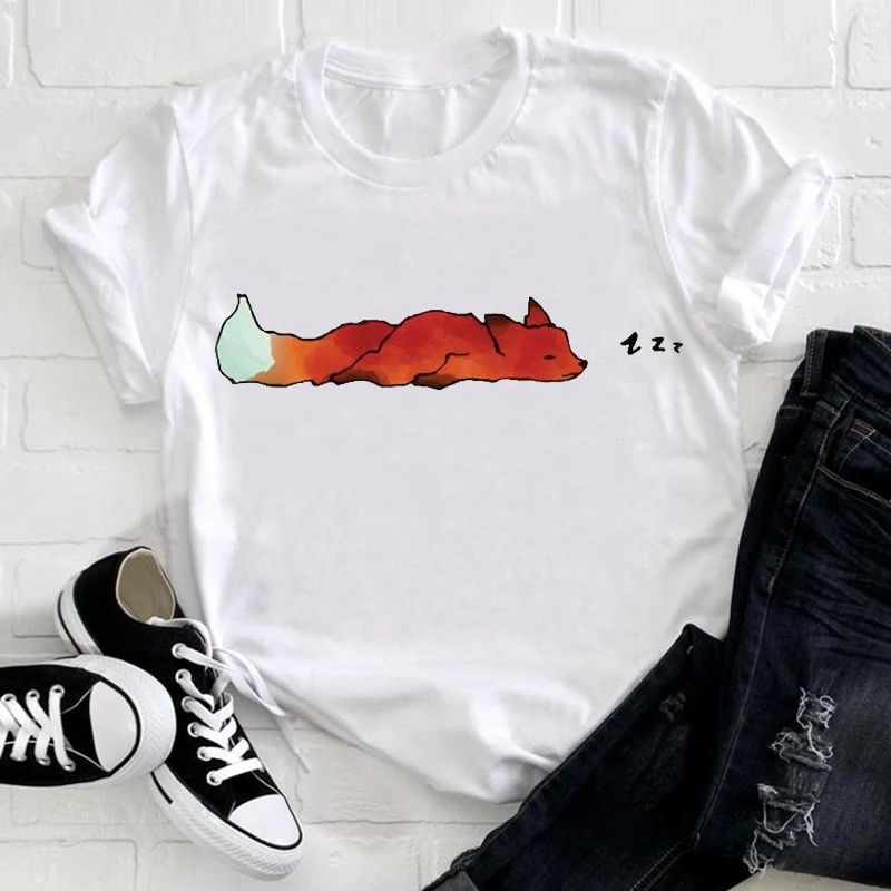 Женские милые футболки с рисунком лисы Футболка с принтом модные то...