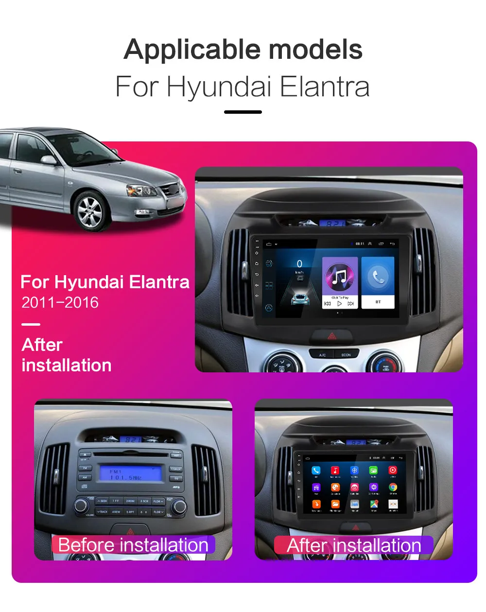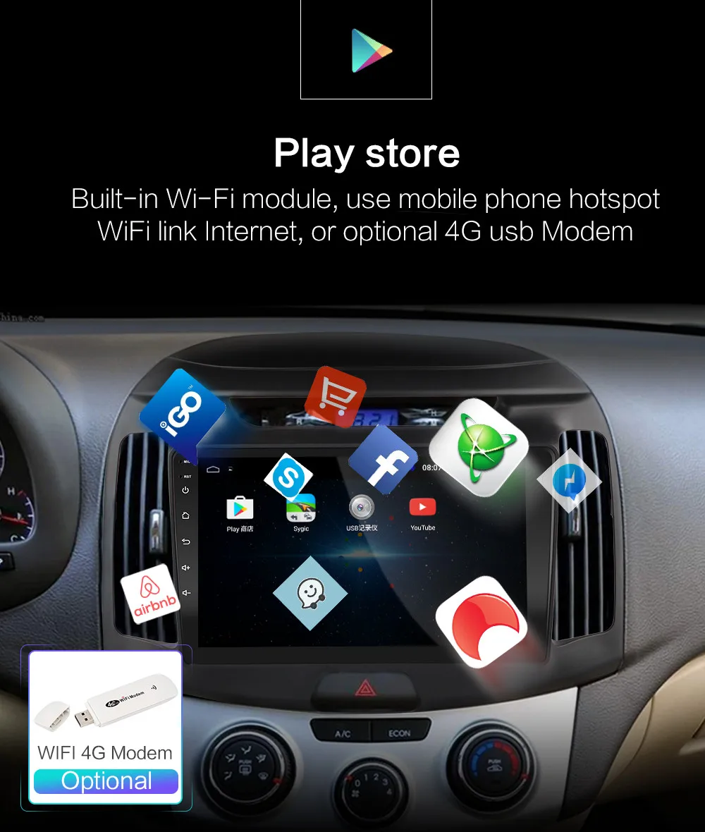 Для Hyundai Elantra 2011 2012 2013 2014 2015 2016 1, 4-х ядерный конфигурация включает в себя (Оперативная память + Встроенная память): 1 Гб + 16 ГБ/2 ГБ + 16 ГБ/2G + 32G / 4G-SIM-3560-2G + 32G [дополнительно]; 2, 8-ядерный конфигурация включает в себя (Оперативная память + Встроенная память): 7260L-2G + 32G / 7260L-4G + 64G / 4G-SIM-5760-2G + 32G / 4G-SIM-5760-4G + 64G / 4G-SIM-TS10-4G + 64G/4g-sim-ts6g на выбор + 128 3, 4-х ядерный содержит: версия: Android 8,1; Четырехъядерный процессор MTK8227 / Cortex-A7 Поддержка автомобиля logo5; Sfactory пароль: 8888 Разрешение: HD 2.5D,1024*600; Не поддерживает функцию AM, функцию RDS; Обычная посылка WiFi поддерживает функцию видеовыхода; Версия 3560-4G-SIM-WiFi: версия: Android 6,0; Поддерживает DSP; Не поддерживает функцию видеовыхода; 4, 8-Core содержат: версия: Android 9,0 или Android 10; Восемь ядер: CPU Quad core и GPU Quad core соответственно; Поддержка автомобиля logo5;Sfactory пароль: 8888; Разрешение: HD 2.5D,1024*600; Версия 7260L-WIFI: поддерживает DSP, функции; Не поддерживает видеовыход; 4G-SIM-5760-WIFI и 4G-SIM-TS10-WIFI версия: поддерживает функции DSP, Carplay, сплит-экрана; Не поддерживает видеовыход; 5. Операционная система Android может установить приложение Google Play store Skype Facebook youTube Twitter и т. Д.; 6. Поддержка: радиостанция, Bluetooth Вызов, Bluetooth музыка, управление рулевым колесом, встроенный WiFi, MP3, видео музыка (MPG, AVI), навигация, видеовыход, зеркальная связь, USB 4G LTE WIFI ключ и другие функции; Поддержка OBD (опционально) Поддержка DAB + (опционально)