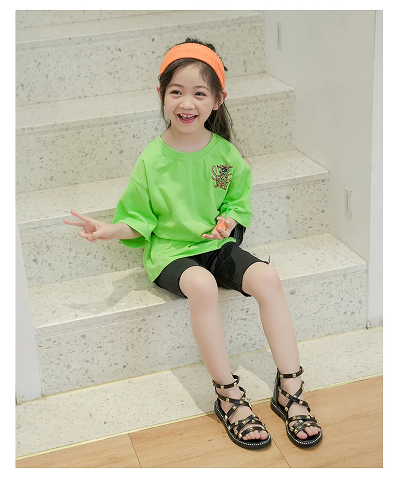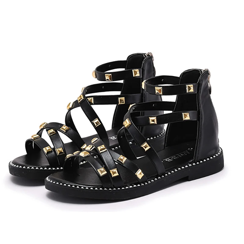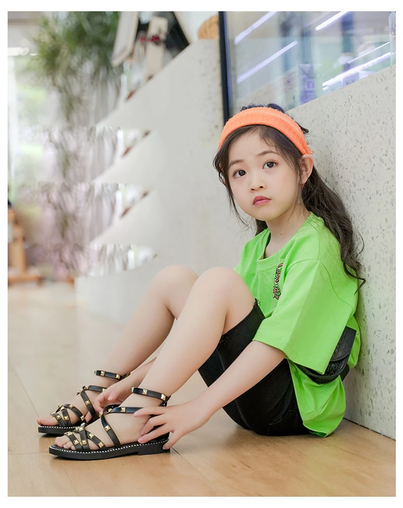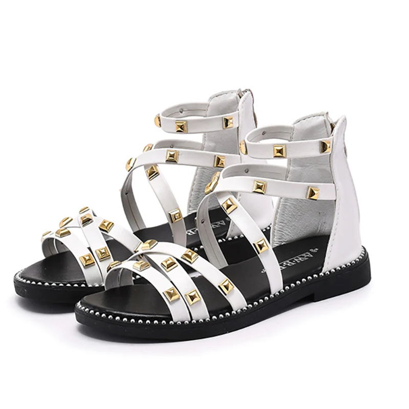 Летние детские футболки с заклепками открытые ботинки с ремешками для девочек-подростков; Детские школьные белые туфли в стиле Принцесса Босоножки 1 От 4 до 12 лет