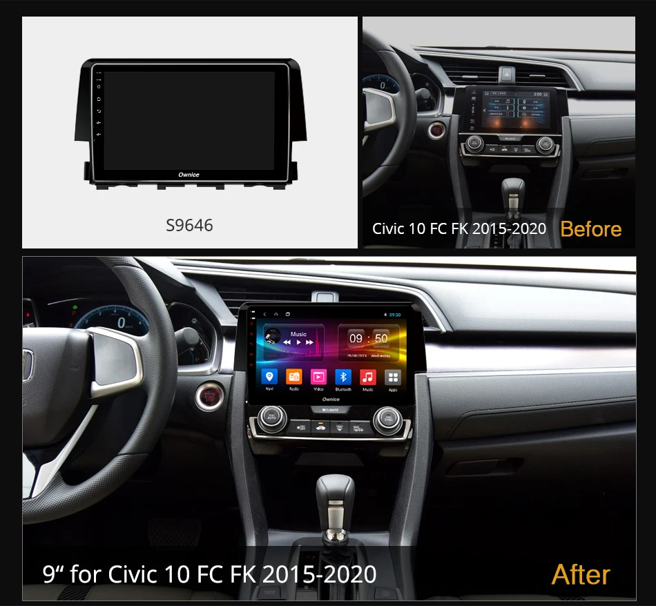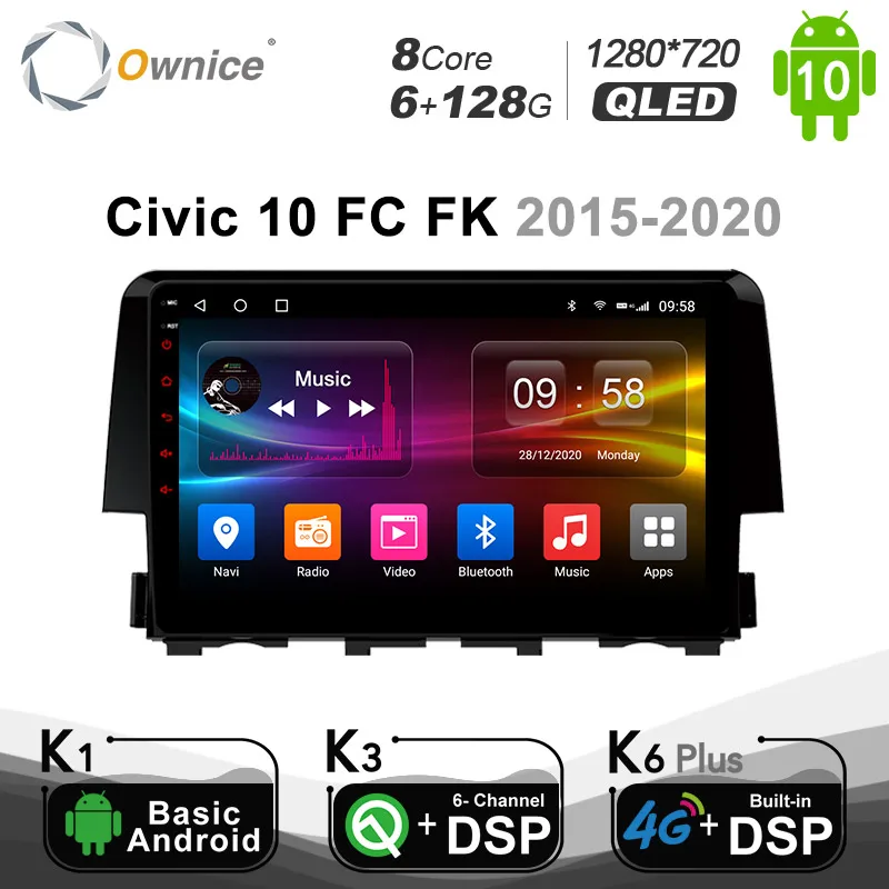 Подходит для Для Honda Civic 10 FC FK 2015 - 2020Примечание: Это радио без DVD диска Если оригинальное автомобильное радио имеет функцию ниже, совместим ли блок Ownice Head? * Управление рулем --- да* Орингинальный радар или датчик парковки --- да* Отображение статуса открытия двери, информация о расходе топлива, обратная Направляющая линия, компас, информация о режиме автомобиля --- да* Оригинальная камера заднего вида и правый переключатель камеры (для Civic 2016 High Version) --- Да, поддержка* Оригинальный кондиционер (для CiVic 2016) --- Да, поддержка Внимание: Приведенная выше информация только для справки, иногда она может не быть совместима с некоторыми автомобилями, потому что автомобили производятся в разных странах в разных летних вариантах, спасибо за понимание. K6 Plus 128G ---UIS7862| Android 10,0 |8 ядер (A75 * 2 + A55 * 6) | 6G + 128G | 2.5D + IPSQLED 1280*720 | Радио 7708 | Усилитель 7851L K6 Plus 64G ---UIS7862| Android 10,0 | 8 ядер (A75 * 2 + A55 * 6) | 4G + 64G | 2.5D + IPSQLED 1280*720 | Радио 7708 | Усилитель 7851L K6 Plus 32G ----UIS7862| Android 10,0 | 8 ядер (A75 * 2 + A55 * 6) | 3G + 32G | 2.5D +IPS QLED 1280*720 | Радио 7708 | Усилитель 7388 K3-PX5 ------ PX5 | Android 10,0|8 ядер | 2G + 32G | 2.5D + TN1024*600 | Радио 7708 | Усилитель7851л K3-PX6 ------ PX6 | Android 10,0 | 6 ядер (A75 * 2 + A53 * 4)| 4G + 64G | 2.5D +IPS 1280*720 | Радио 7708 | Усилитель 7851LK1-Low ------- AC8227L | Android 6,0 | 4 ядра| 1G + 16G | 2.5D + TN 1024*600 | Радио 7786 | Усилитель 7388K1-High ------ AC8227L | Android 8,1 |4 ядра | 2G + 16G | 2.5D + TN 1024*600 | Радио 7786 | Усилитель 7388