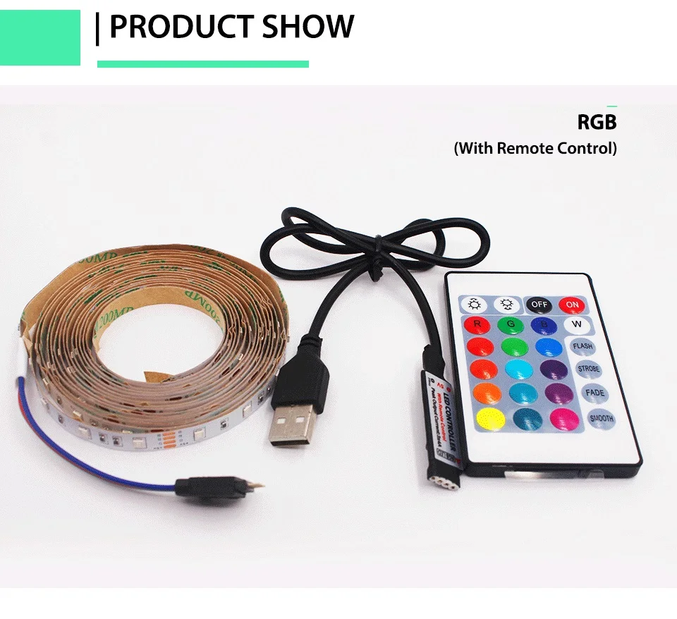 Светодиодная ленсветильник 2835SMD с питанием от USB, гибкая светодиодная лампа RGB для подсветильник Ки телевизора, рабочего стола, монитора, неоновая Диодная лента, 5 в постоянного тока, 1 м, 2 м, 3 м, 5 м