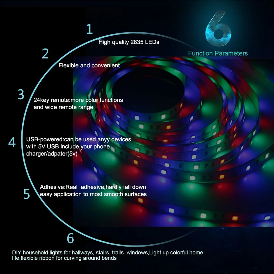 Светодиодный ленточный светильник USB 2835SMD DC5V гибкая светодиодная лампа Luces RGB 1 м 2 м 3 м 5 м ТВ Настольный экран задний светильник неоновая Диодная лента