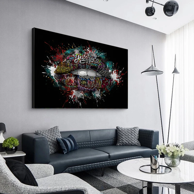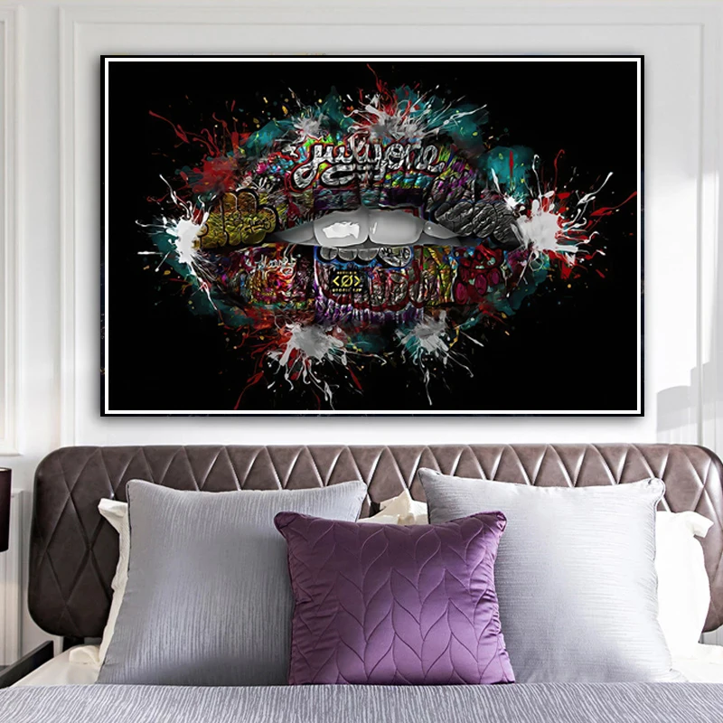 Граффити Сексуальная губная помада, картина маслом на холсте настенные художественные плакаты и принты настенные картины для Гостиная стены дома Cuadros Декор