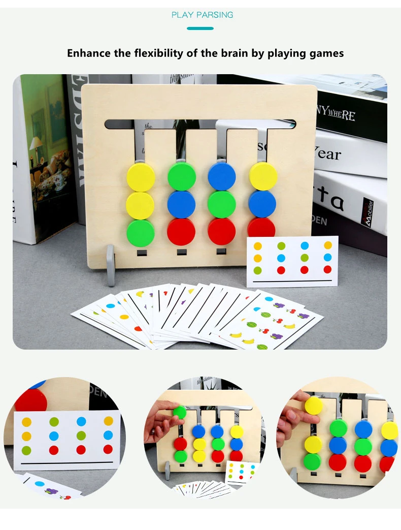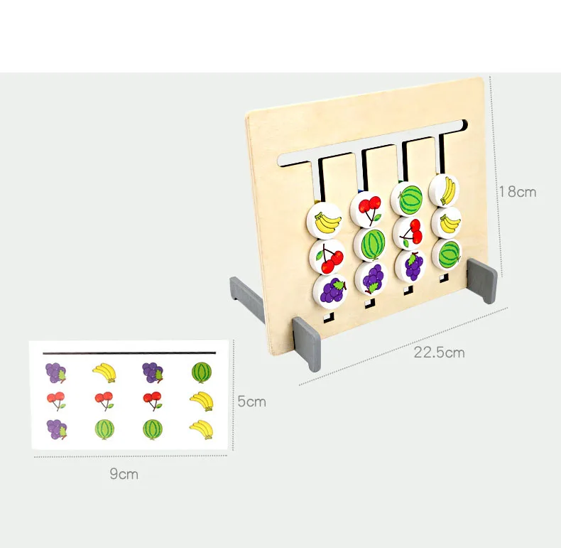 [Наименование товара]: деревянная игрушка Монтессори, четыре цвета/фрукты, двусторонняя игра, логическое мышление, Обучающие Детские развивающие игрушки для детей [Материал]: дерево [Цвет соответствует]: как на картинке [Пол]: унисекс [Возраст]: для детей от 3 лет [Размер]: 22,5 см * 18 см [Особенность]: интеллектуальное развитие Лучшие подарки для игры родителей и детей Примечание: * Замеры сделаны вручную, поэтому возможны 0,5 см; Она вполне допустима при в связи с тем, что измерения выполнены вручную. * Из-за разницы между различными мониторами изображение может не отражать фактический цвет товара, надеемся на ваше понимание.
