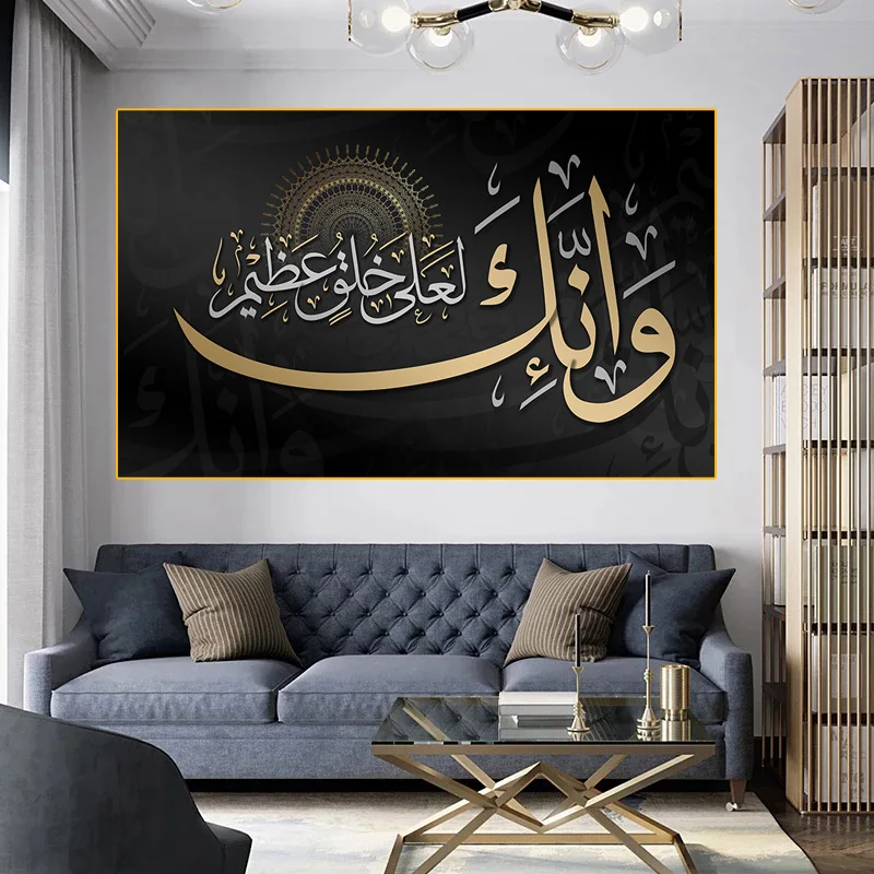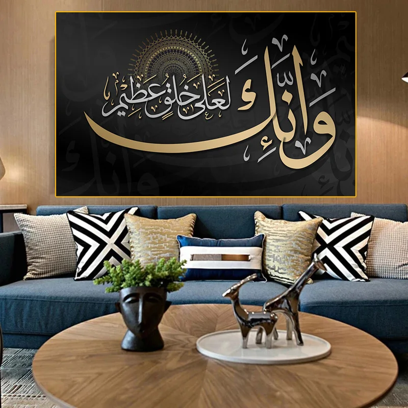 Исламский черный постер, арабская каллиграфия, религиозное Писание, холст, Современная Настенная картина, картины, мусульманский Декор для дома