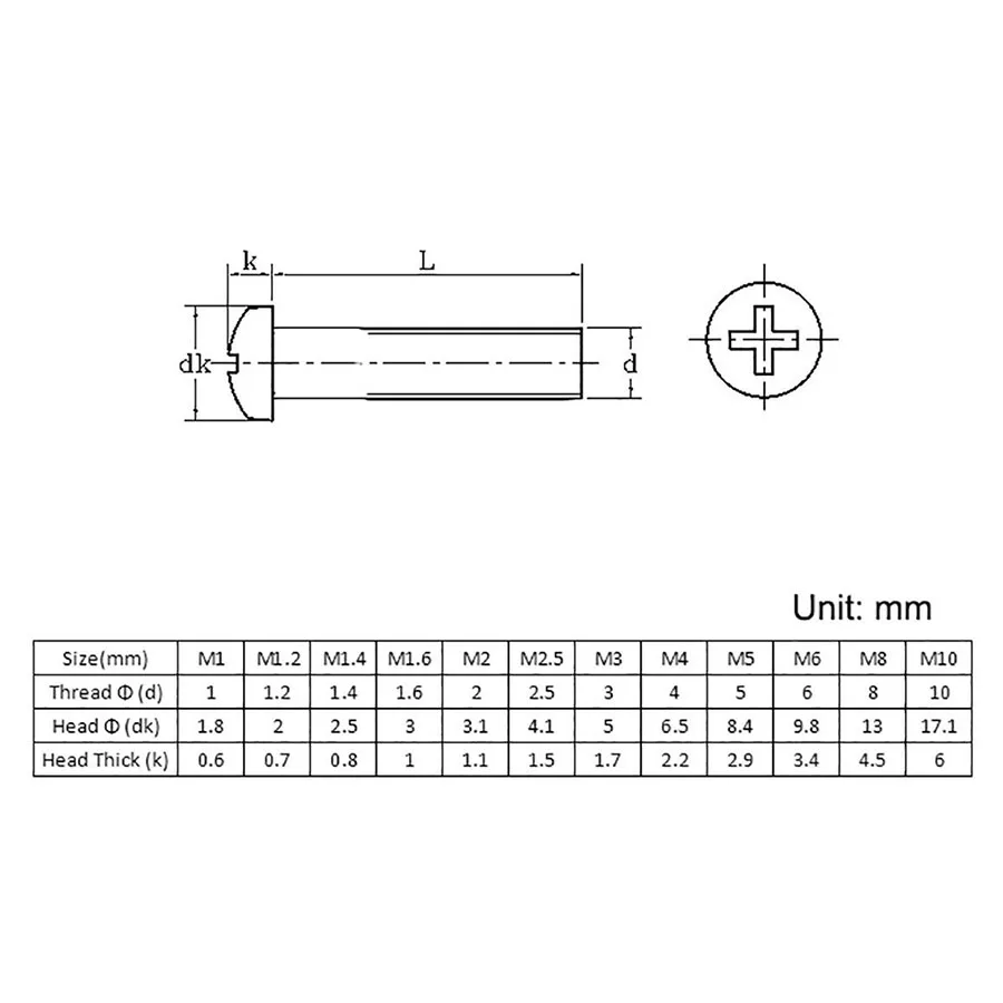 Винты с круглой головкой A2 нержавеющий крестообразный Винт M6 M8 M10