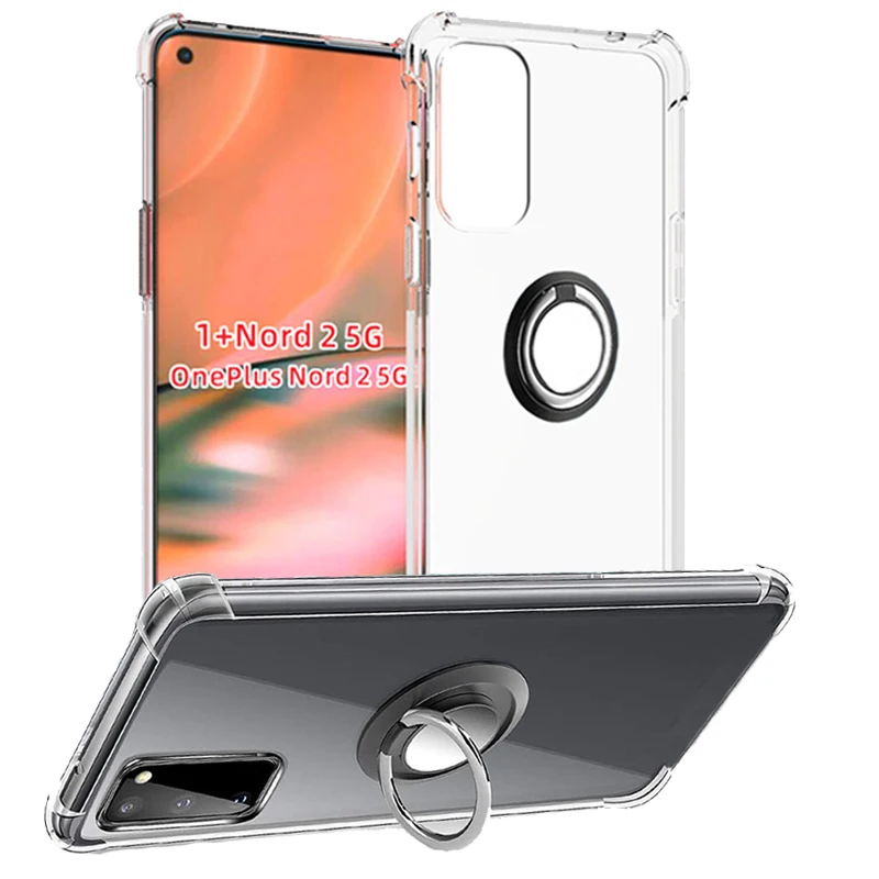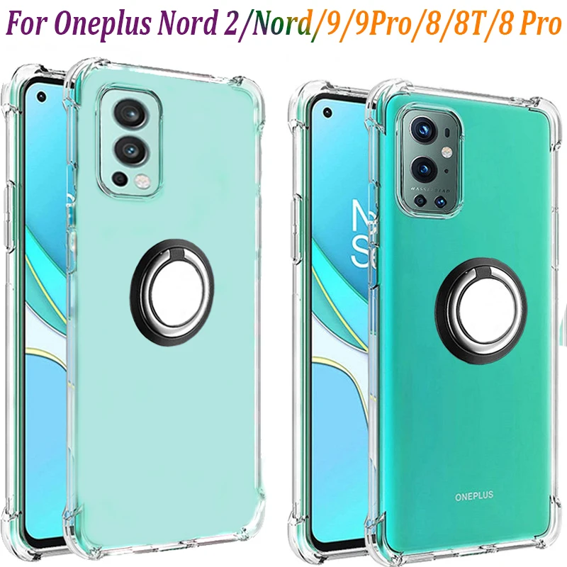 Силиконовый чехол One plus Nord 2 с металлическим кольцом-держателем, прозрачный чехол для Oneplus 9 Pro 8 T Nord, противоударный чехол для OnePlus Nord 2, чехол для телефона