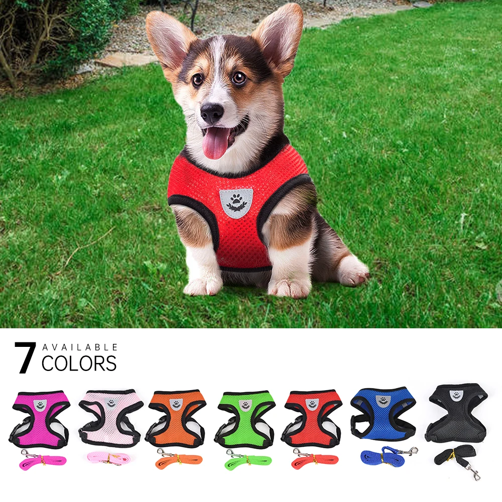 Шлейка-жилетка для собак, тренировочная Мягкая сетчатая шлейка для щенков, собак, кошек, щенков, с поводком 1 м