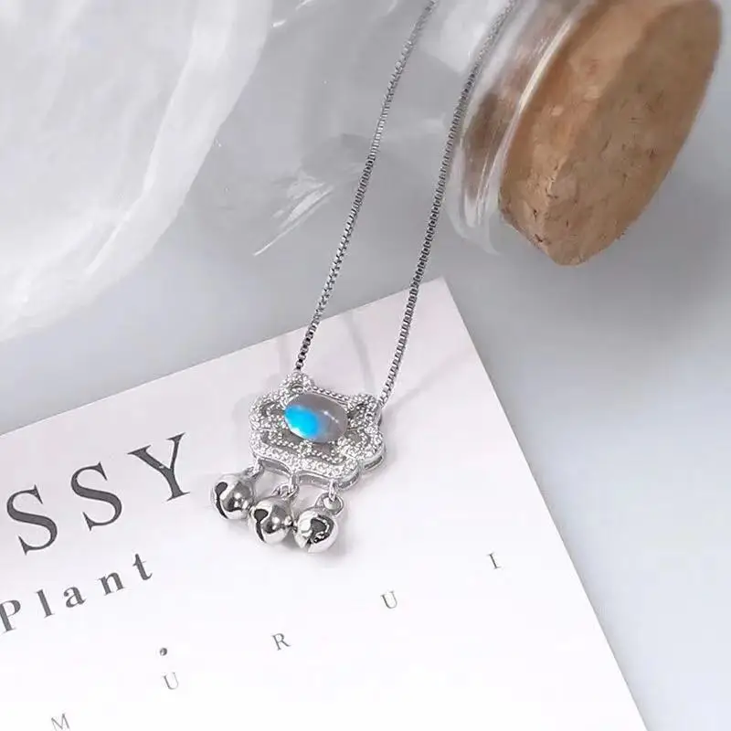 Женское Ожерелье с лунным камнем и замком долголетия, цепочка звонок