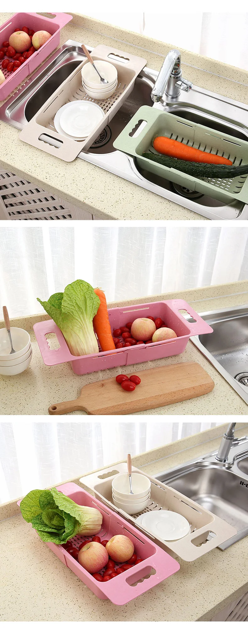 Регулируемая телескопическая спутниковая тарелка сливная корзина для раковины мытье овощей пластиковая сушилка для фруктов органайзер для кухонных принадлежностей
