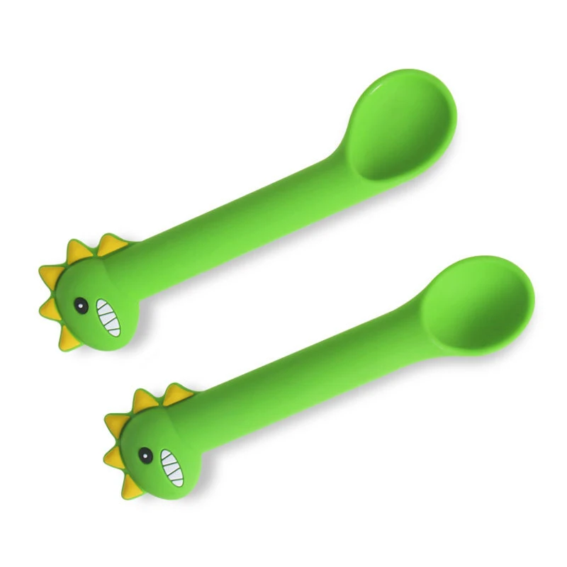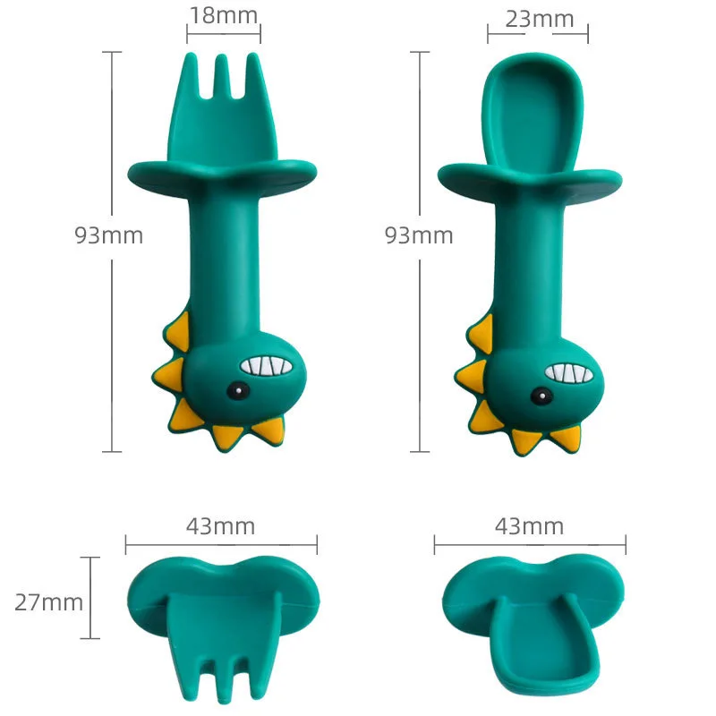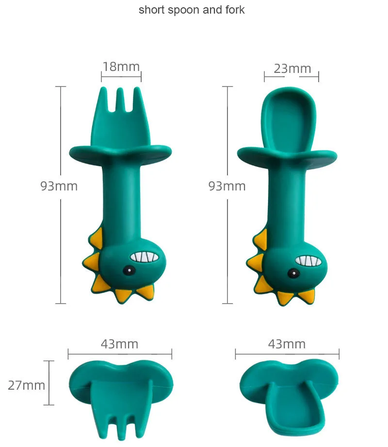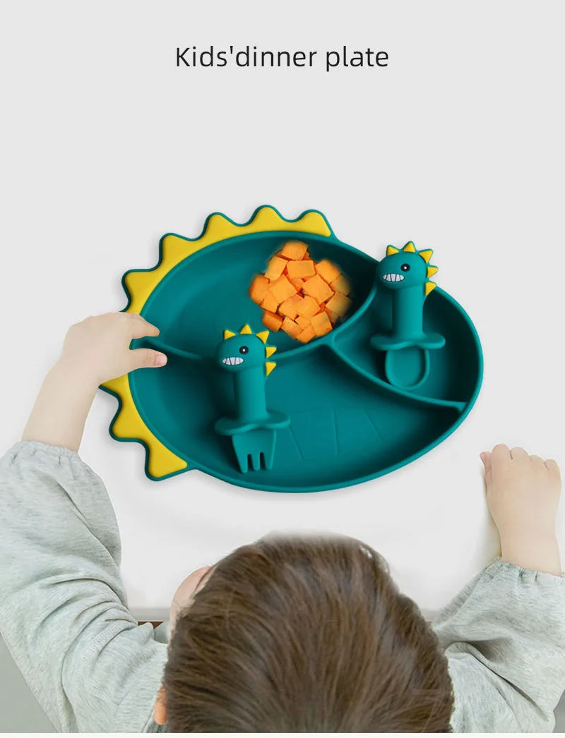 Детская силиконовая тарелка для кормления с мультипликационным динозавром, нескользящая присоска, чаша в клетку, детская посуда, вилка, ложка