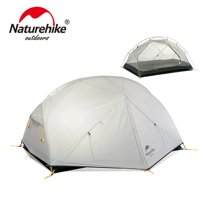 Палатка NatureHike Mongar туристическая Ультралегкая, нейлоновая двухслойная, на 2-3 человек, 20D, водонепроницаемая, 3 сезона
