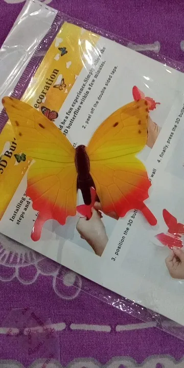 бабочки пришли всё 12 шт. качество так себе. просто тонкий пластик и наклейки в комплекте для крепления. в темноте не видно, что светятся. не очень довольна покупкой может просто не удачный цвет выбрала)пришли быстро