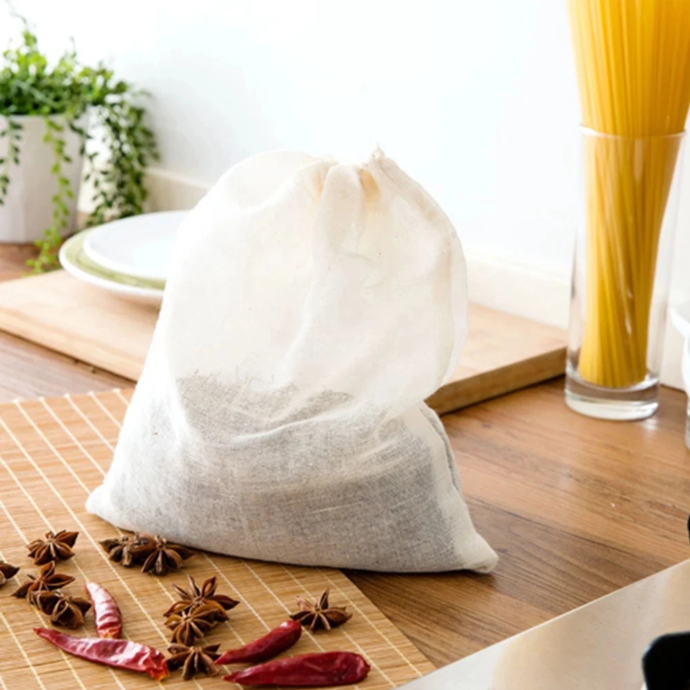 10 шт. в прозрачном пакете и нарочито бесхитростного дизайна; Bolsa De тела из хлопка и льна многоразовые Еда мешок сетчатого фильтра молока гайки фасоли муслин ухи готовить кипения 26cmX20cm