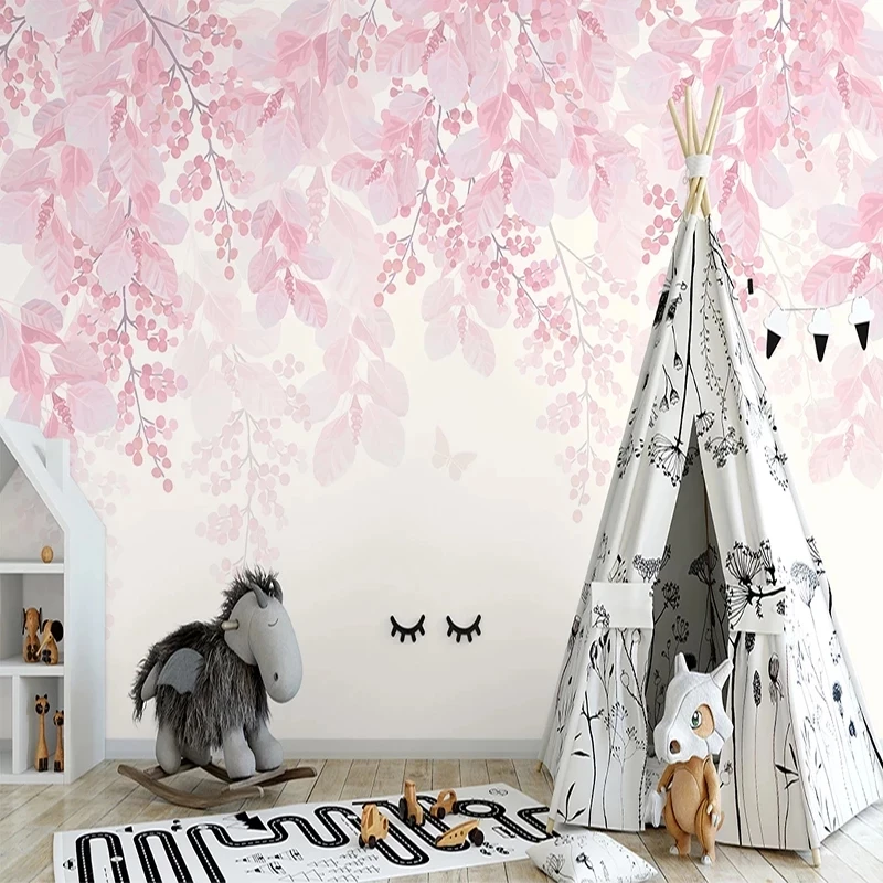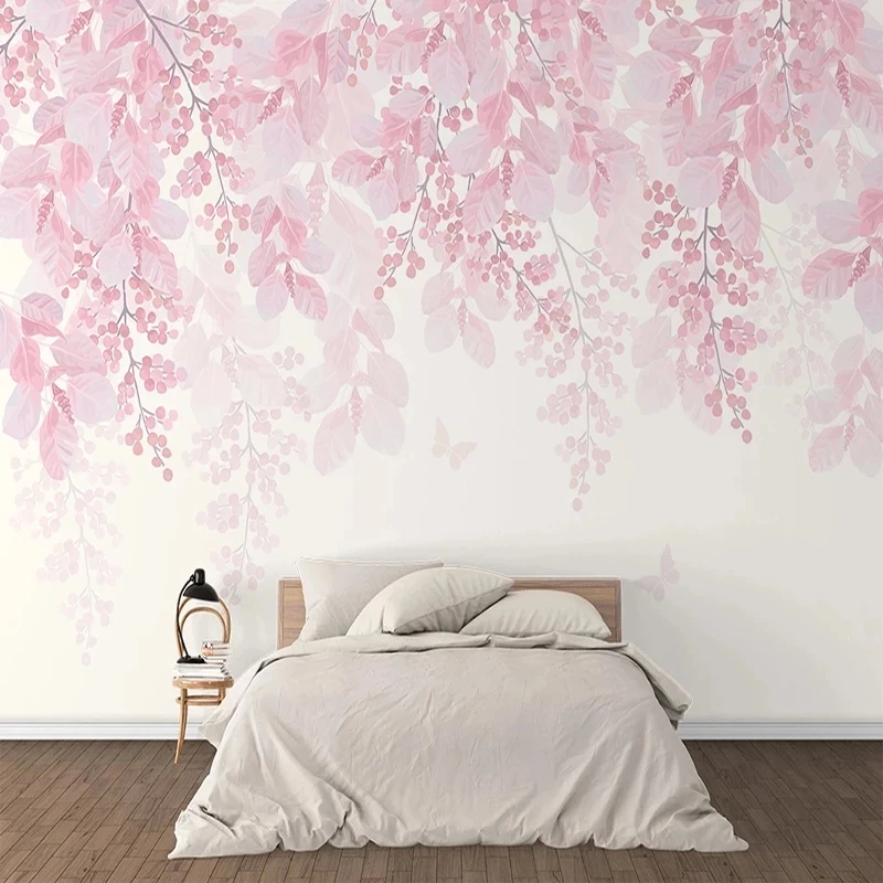 Самоклеящиеся 3D-обои на заказ, настенные фрески романтического розового цветка вишни, лоза, современные водонепроницаемые украшения для спальни, дома