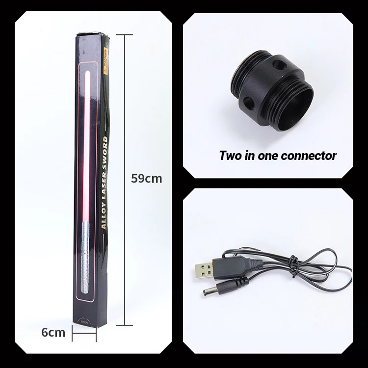 Световой меч * 2, разъем * 1, USB кабель для зарядки * 1, руководство * 1