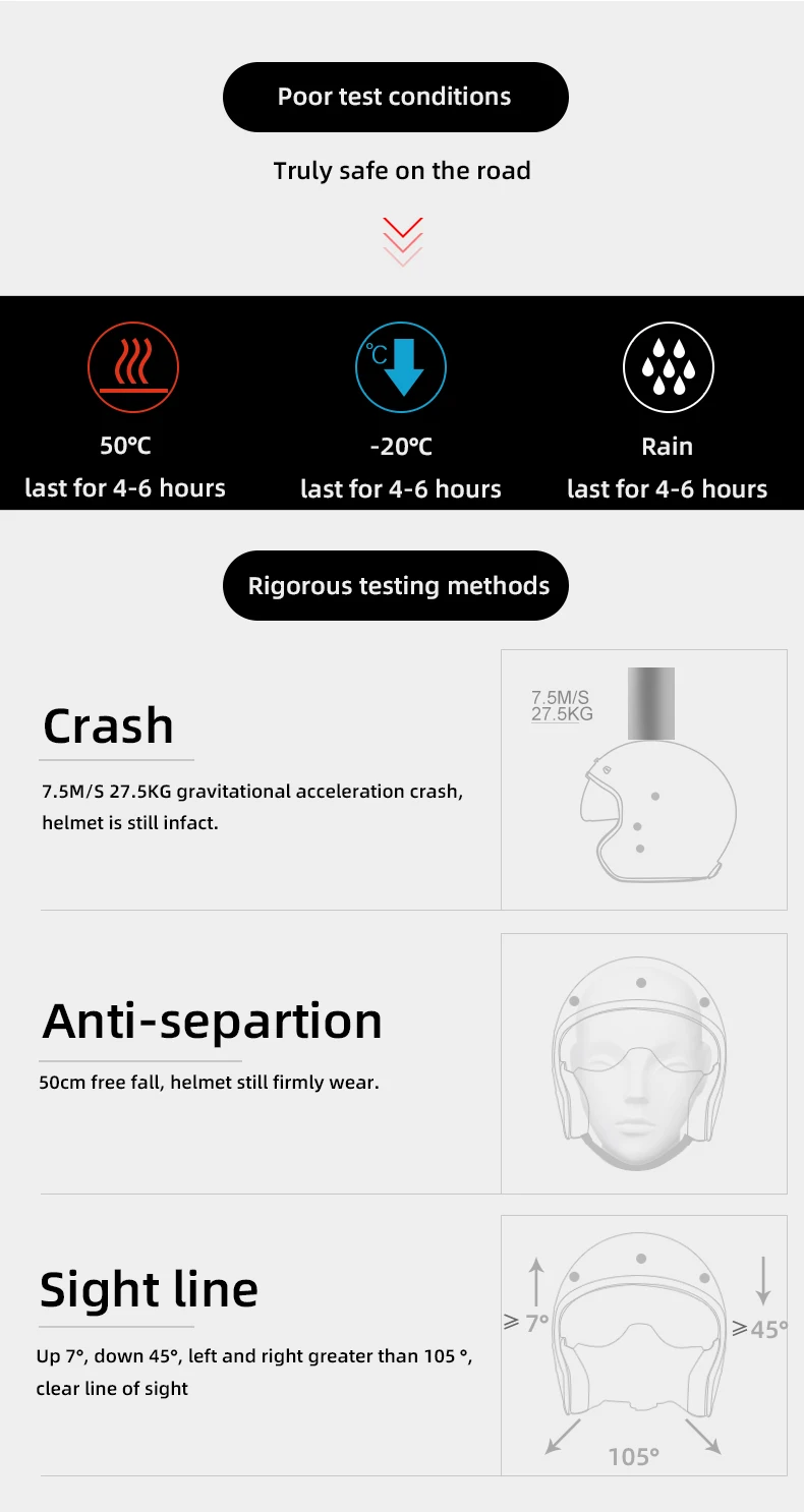 Мы не можем осуждать шлем только по его внешнему виду и цене. Каждый год 1,2 миллионов человек по всему миру, в аварии мотоцикла, что означает, что по крайней мере два человека убил каждую минуту. Цель нашего шлема-защитить череп от 90% воздействия, вызванного аварийным типом, Который в основном покрывает низкий и средний диапазон энергии и поглощает некоторые из воздействия высокой энергии. Наш шлем прошел испытание на ослабление удара, испытание на проникновение, испытание на удержание (шлем не отпадает во время быстрого ускорения).