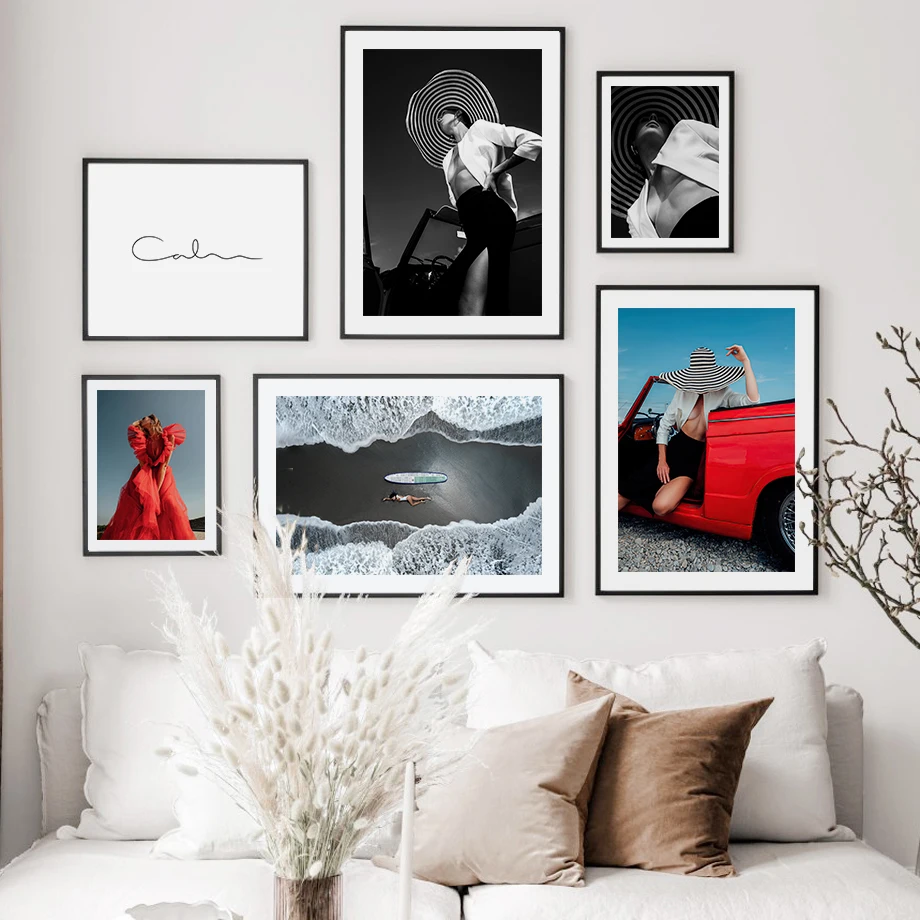 Красная Автомобильная шляпа девушка черная белая фотография скандинавские плакаты и принты Настенная картина на холсте настенные картины для гостиной клубный Декор