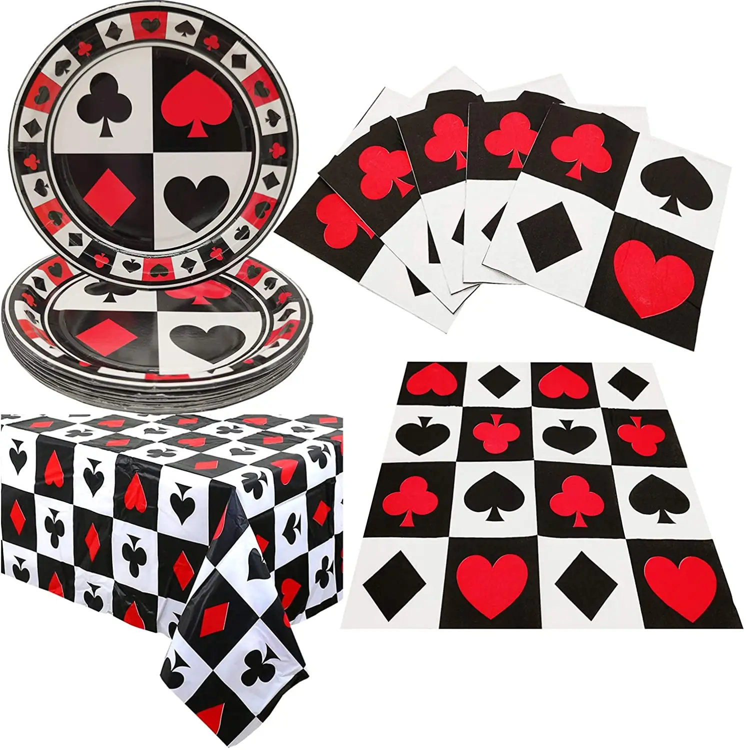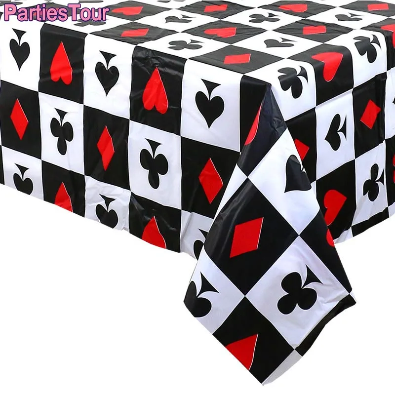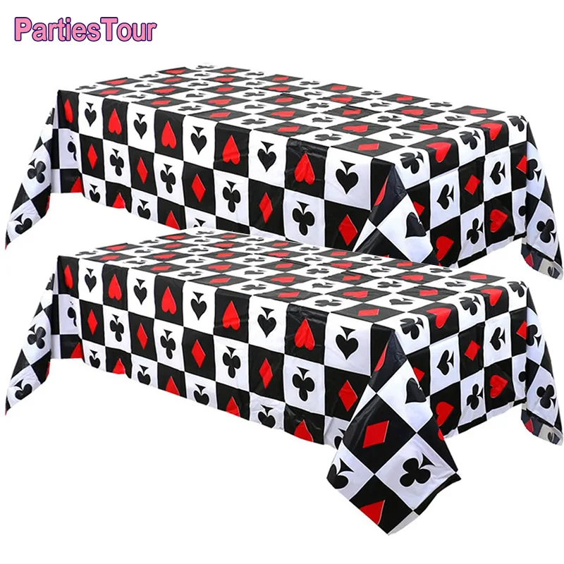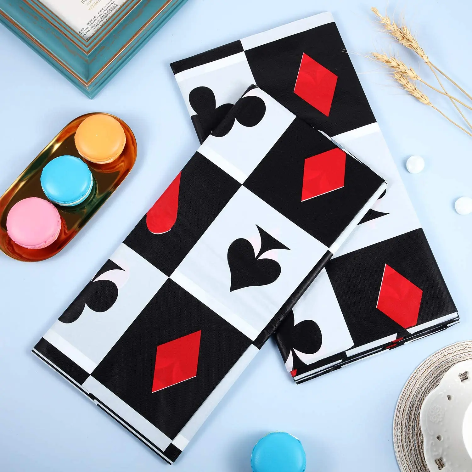 2 шт., вечерние скатерти для игры в казино, вечерние скатерти для покера, вечерние скатерти для казино в стиле Лас-Вегаса, белые, красные, черные пластиковые скатерти