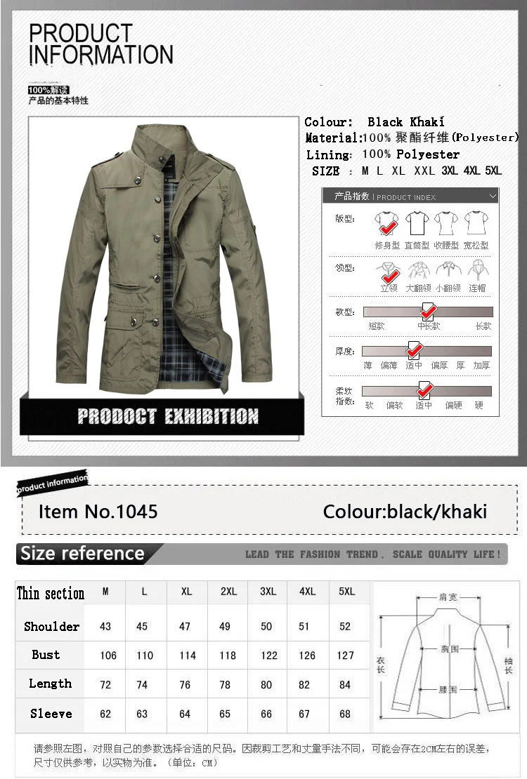 Ткань: 100% полиэфирное волокноСтиль: Весенняя тонкая куртка средней длиныОсобенности: модель с воротником-стойкой и удобна в носке.Если у вас есть какие-либо вопросы по поводу размера, вы можете напрямую обратиться в службу поддержки клиентов, спасибо за понимание!