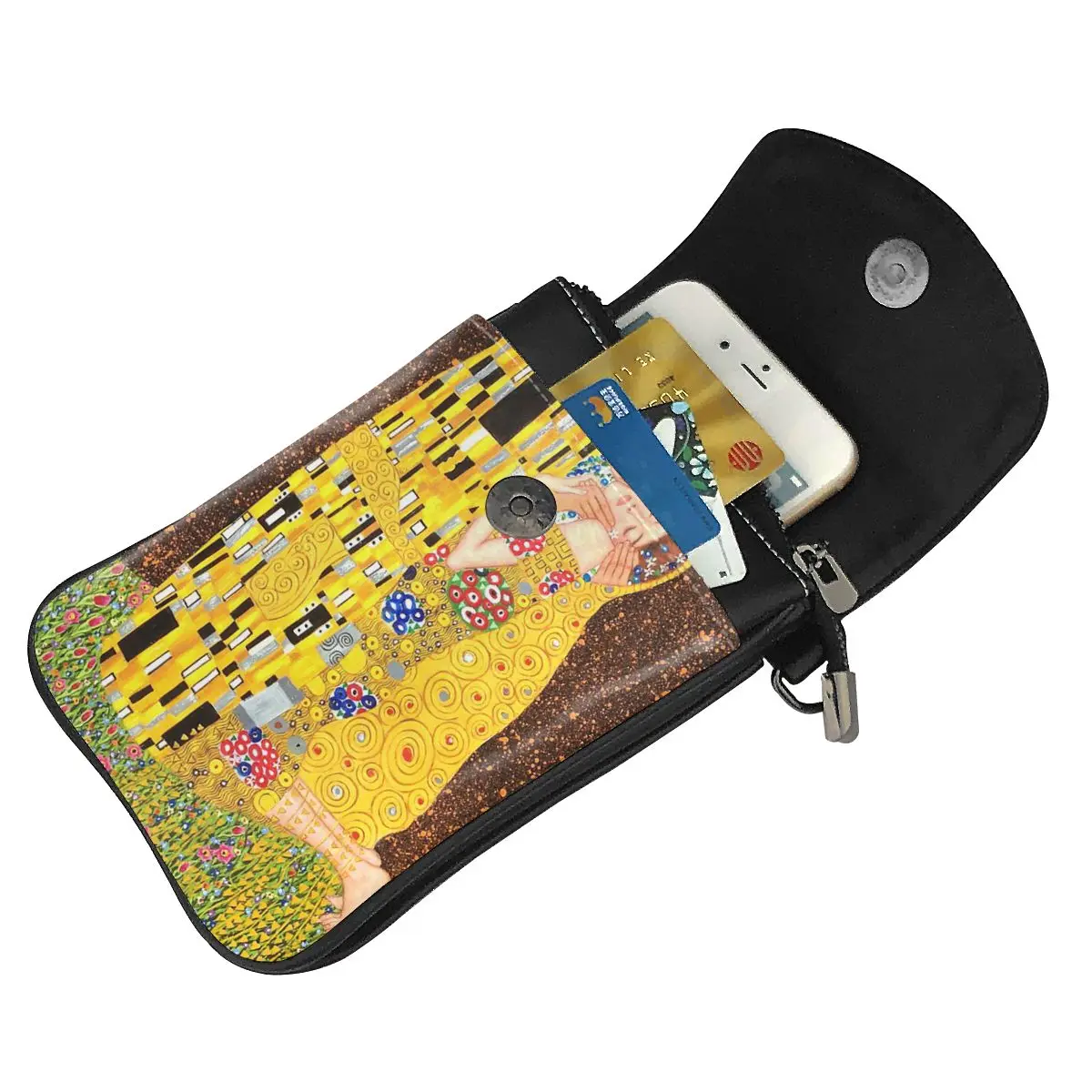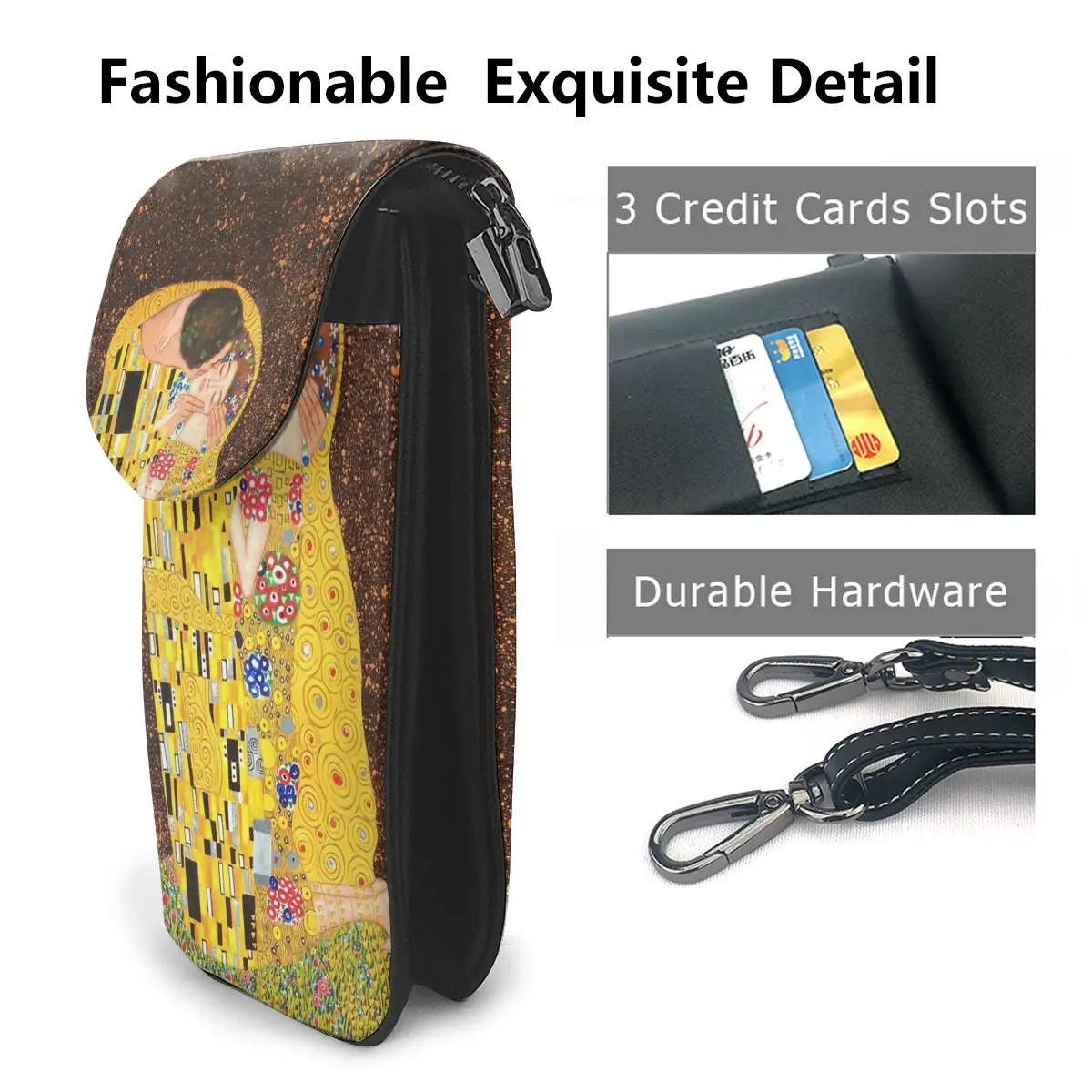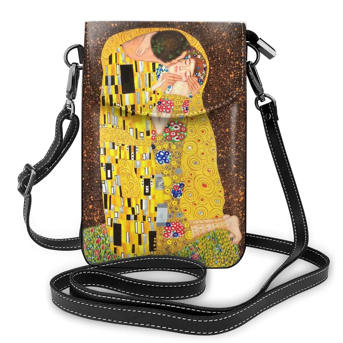 Классическая сумка через плечо Gustav Klimt kiss, Многофункциональная Кожаная женская сумка через плечо для телефона, тонкий кошелек для подростков