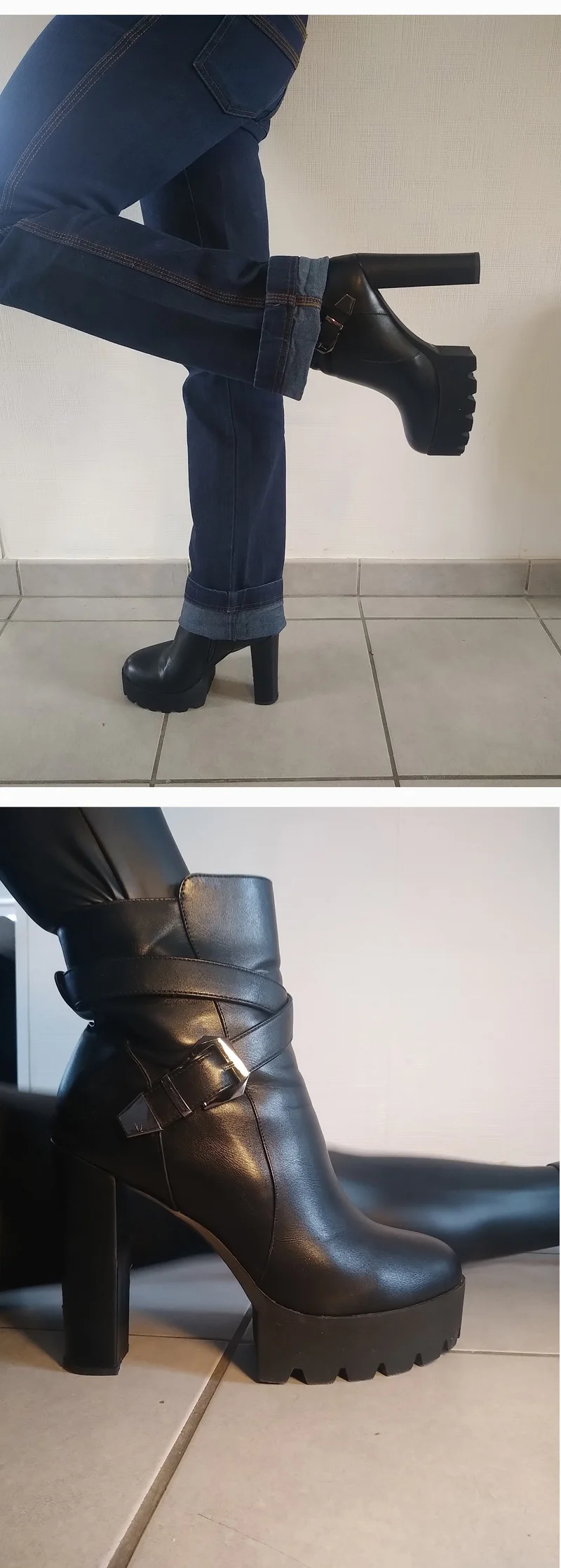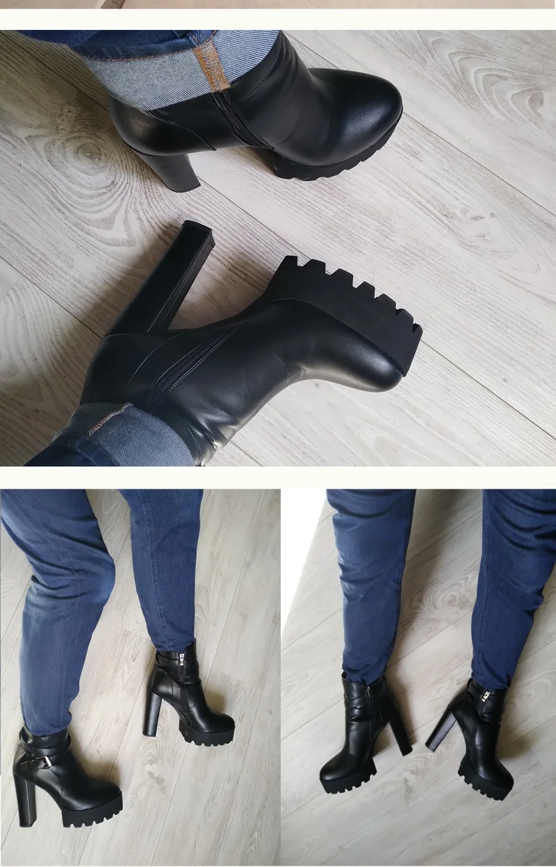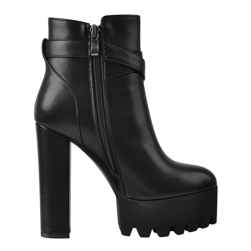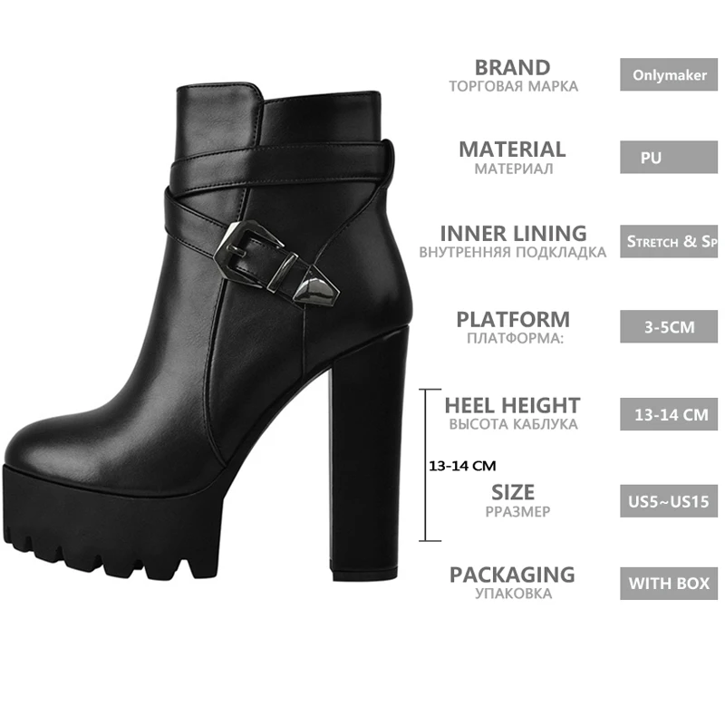 Onlymaker Женская матовая обувь на платформе черного цвета на не сужающемся книзу высоком массивном каблуке с молнией сбоку; Ботильоны размера плюс;