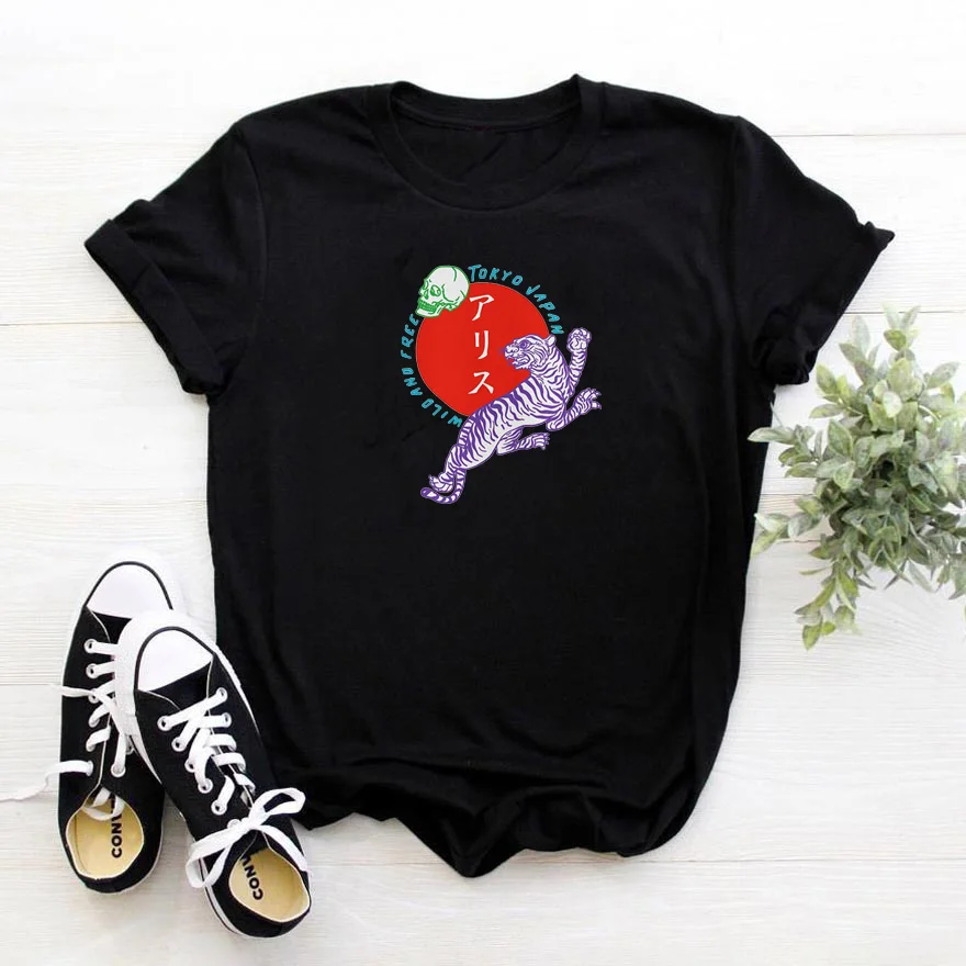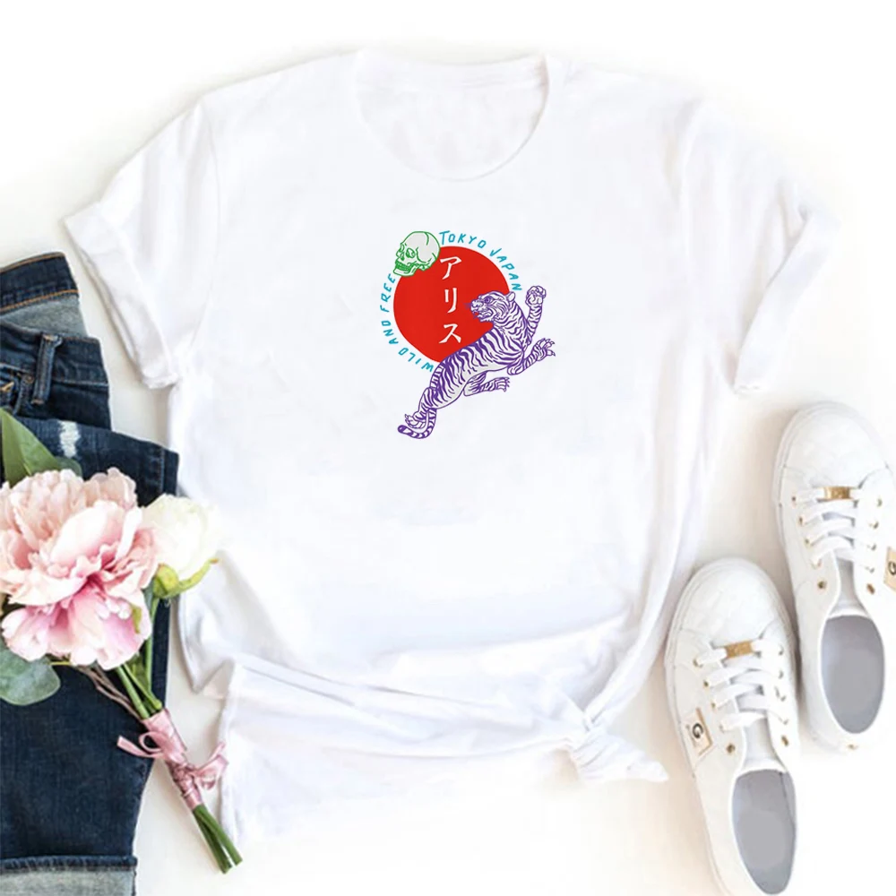 Женская футболка с тигровым принтом, в стиле Токио, с коротким рукавом