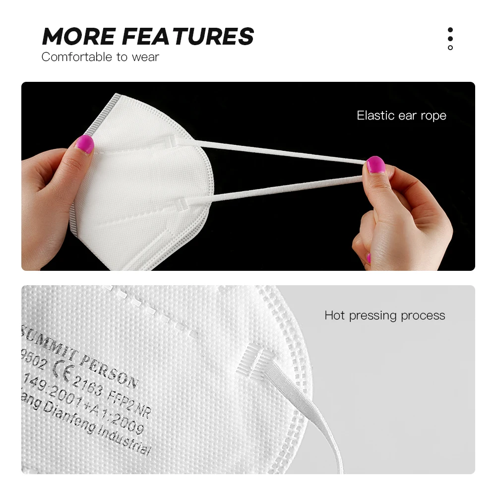 50 шт. CE FFP2 маски для лица защитные маски для взрослых фильтр для лица маски для лица fpp2 маски для рта серый черный
