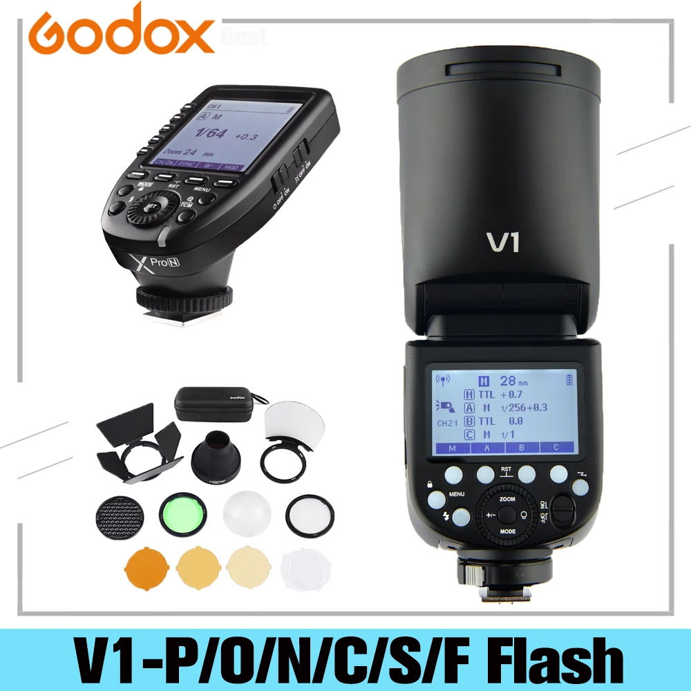 Вспышка Godox V1 V1-PONCSF, круглая, TTL 18000s, для Pentax, Olympus, Panasonic, Sony, Fuji, Nikon, Canon