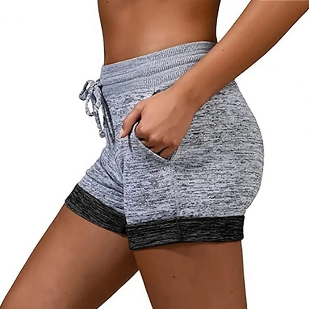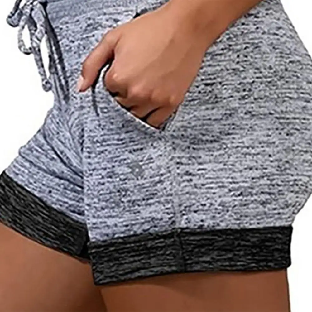 2021 Женские шорты летние Цвет блок быстросохнущие штаны с высокой посадкой шнурок укороченные штаны размера плюс свободные спортивные шорты женская одежда