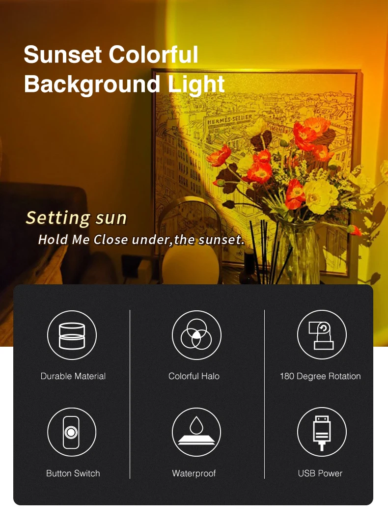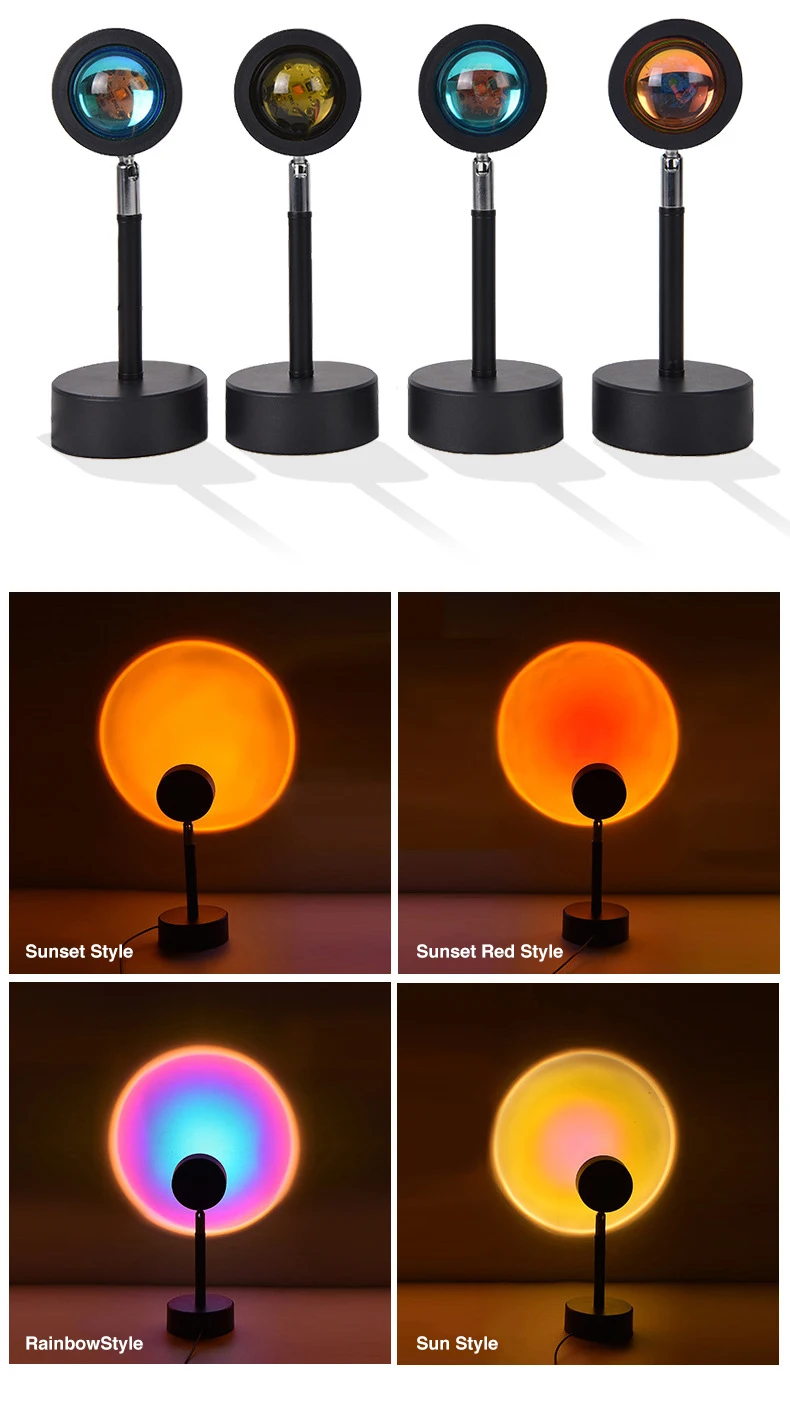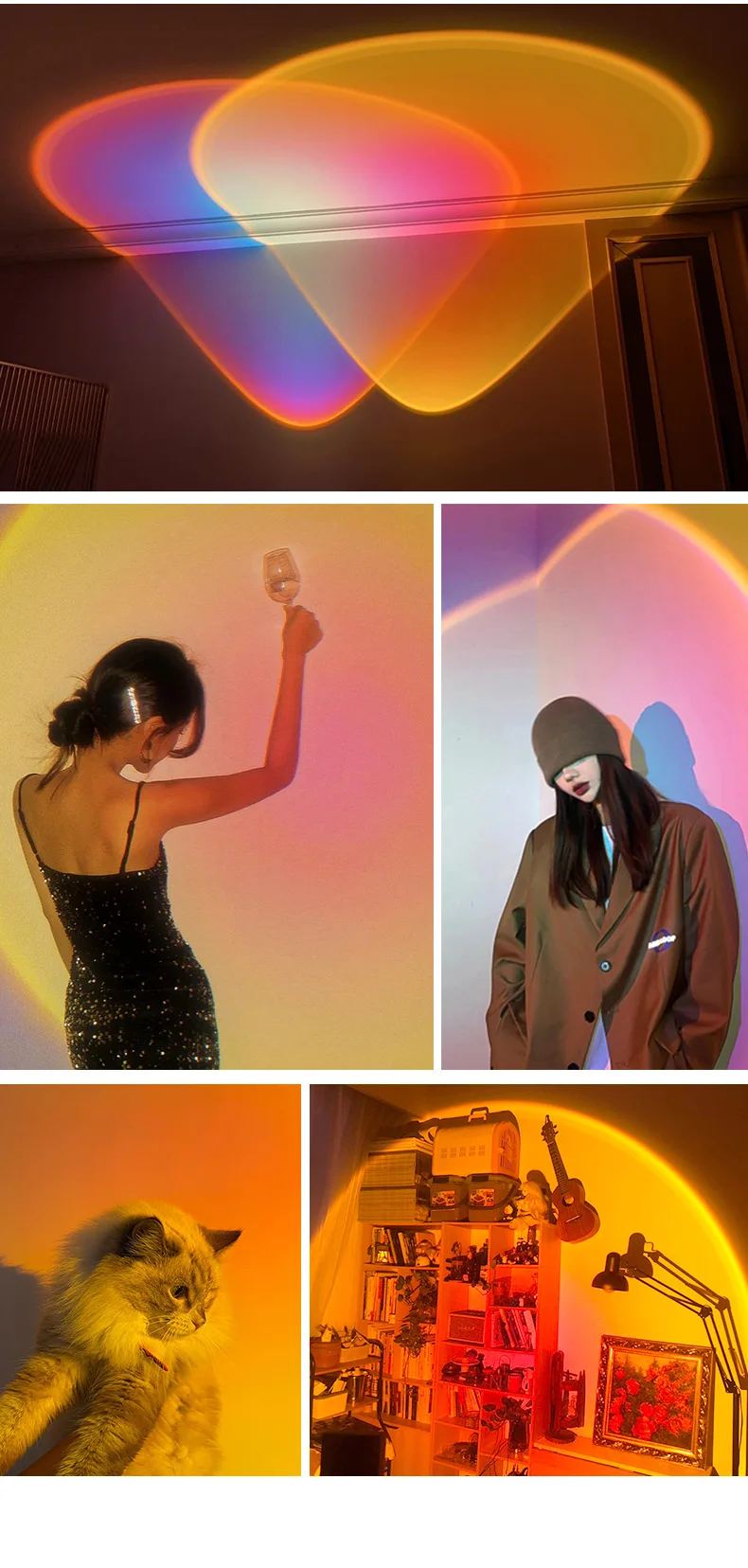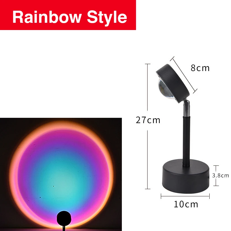 Лампа-проектор, вращаюсветильник на 180 градусов, с радужным закатом