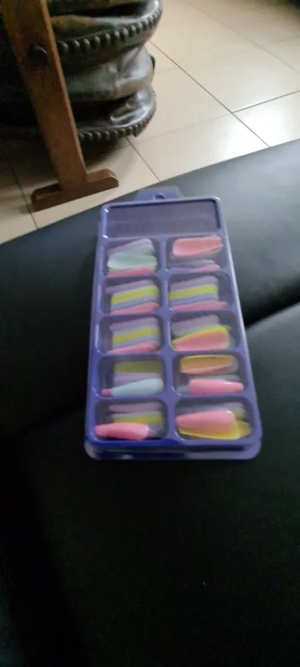 Качество хорошее, доставка быстрая 10 дней до м.о. Ногти клеются на клей, цвета совпадают с фото продавца.