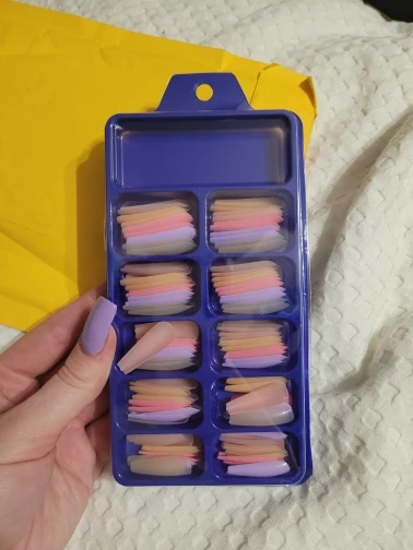 Самые неудобные ногти когда-либо! Я действительно использовал так много различных надавливания/клея на ногтях, и это худшее на сегодняшний день! Они так сильно повредили мои ногти и пальцы. Я думаю, это потому, что гвоздь так сильно изогнут. Не рекомендуется!